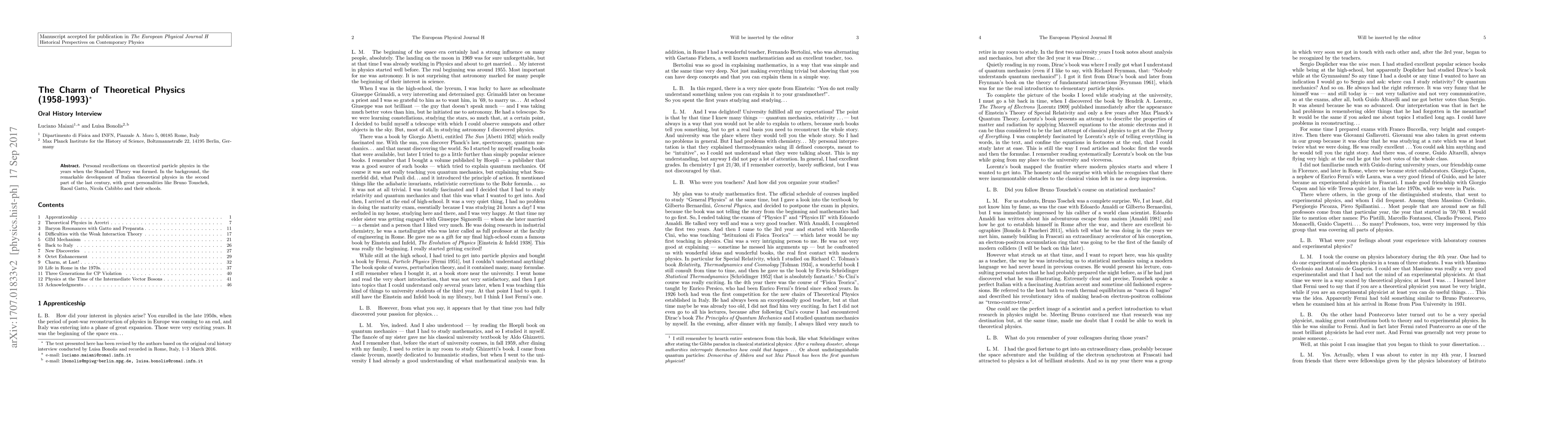 Personal recollections on theoretical particle physics in the years when the Standard Theory was formed. In the background, the remarkable development of Italian theoretical physics in the second part of the last century, with great personalities like Bruno Touschek, Raoul Gatto, Nicola Cabibbo and their schools.