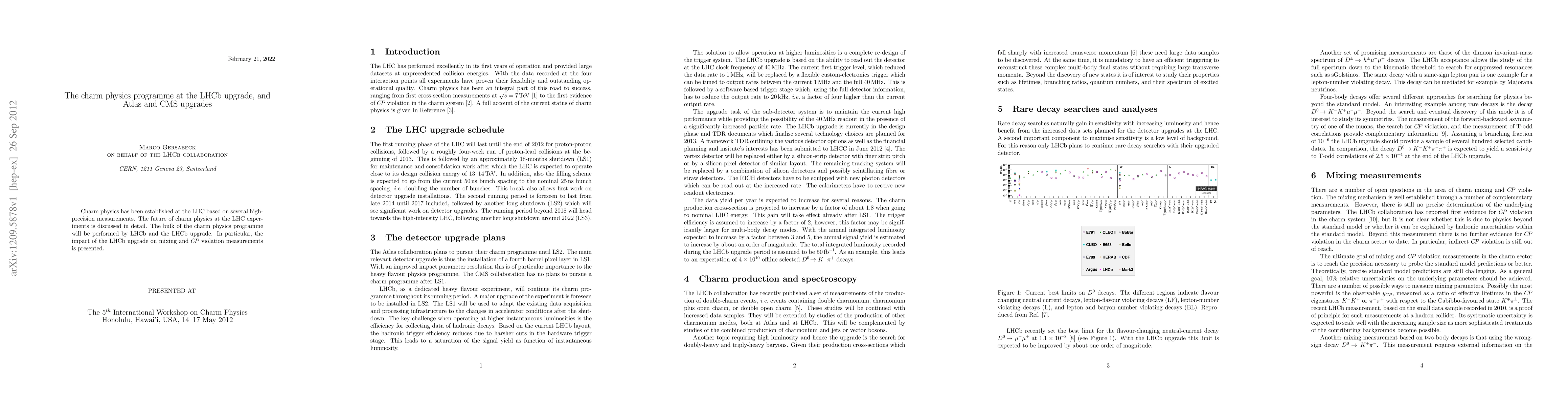 Summary: This paper discusses the future of charm physics at the LHC, emphasizing the LHCb upgrade's role in high-precision measurements of mixing and CP violation, alongside upgrades to the Atlas and CMS experiments. The LHCb upgrade is expected to significantly enhance the study of these phenomena.