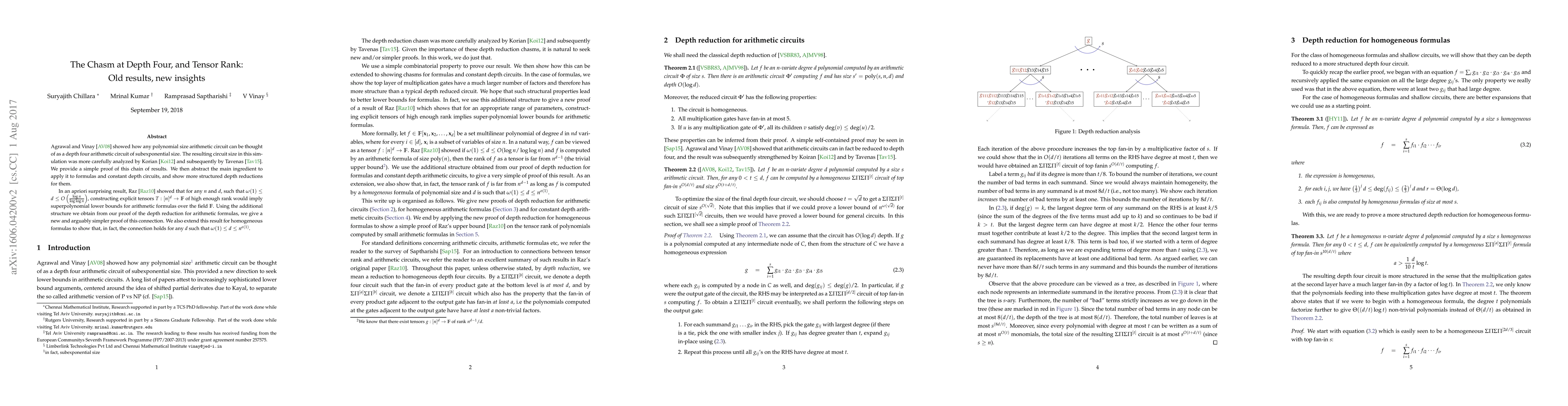 Agrawal and Vinay [AV08] showed how any polynomial size arithmetic circuit can be thought of as a depth four arithmetic circuit of subexponential size. The resulting circuit size in this simulation was more carefully analyzed by Korian [Koiran] and subsequently by Tavenas [Tav13]. We provide a simple proof of this chain of results. We then abstract the main ingredient to apply it to formulas and constant depth circuits, and show more structured depth reductions for them. In an apriori surprising result, Raz [Raz10] showed that for any $n$ and $d$, such that $ \omega(1) \leq d \leq O\left(\frac{\log n}{\log\log n}\right)$, constructing explicit tensors $T:[n]^d \rightarrow F$ of high enough rank would imply superpolynomial lower bounds for arithmetic formulas over the field $F$. Using the additional structure we obtain from our proof of the depth reduction for arithmetic formulas, we give a new and arguably simpler proof of this connection. We also extend this result for homogeneous formulas to show that, in fact, the connection holds for any $d$ such that $\omega(1) \leq d \leq n^{o(1)}$.