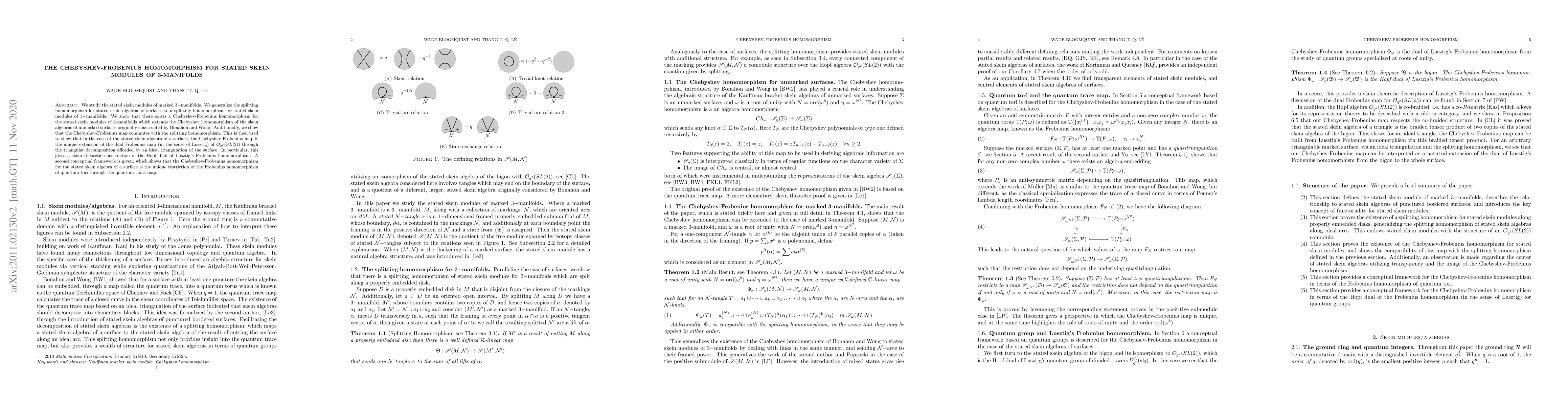 This paper generalizes a splitting homomorphism for stated skein algebras of surfaces to 3-manifolds, introducing a Chebyshev-Frobenius homomorphism that extends the Chebyshev homomorphism for unmarked surfaces. The Chebyshev-Frobenius map is shown to commute with the splitting homomorphism, providing a skein theoretic construction of the Hopf dual of Lusztig's Frobenius homomorphism.