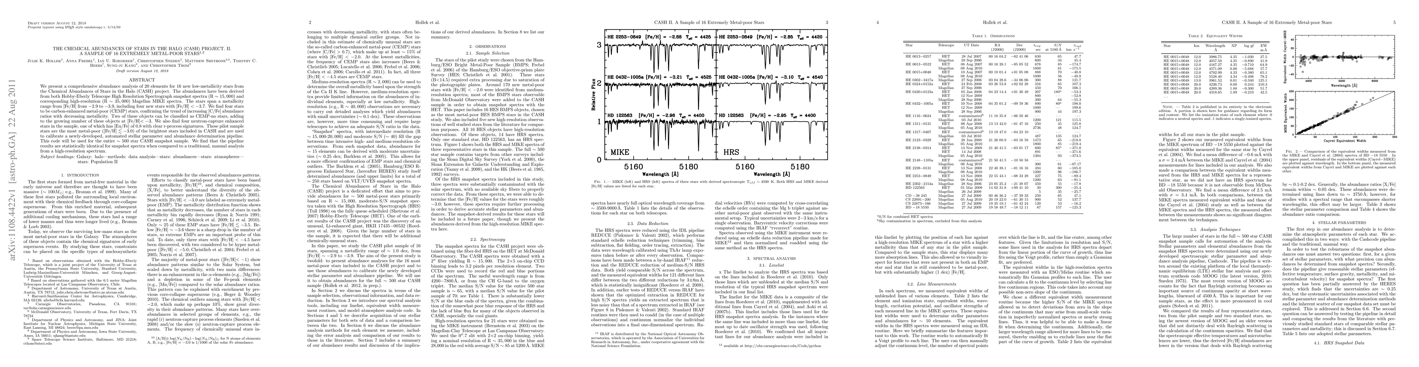 We present a comprehensive abundance analysis of 20 elements for 16 new low-metallicity stars from the Chemical Abundances of Stars in the Halo (CASH) project. The abundances have been derived from both Hobby-Eberly Telescope High Resolution Spectrograph snapshot spectra (R~15,000) and corresponding high-resolution (R~35,000) Magellan MIKE spectra. The stars span a metallicity range from [Fe/H] from -2.9 to -3.9, including four new stars with [Fe/H]<-3.7. We find four stars to be carbon-enhanced metal-poor (CEMP) stars, confirming the trend of increasing [C/Fe] abundance ratios with decreasing metallicity. Two of these objects can be classified as CEMP-no stars, adding to the growing number of these objects at [Fe/H]<-3. We also find four neutron-capture enhanced stars in the sample, one of which has [Eu/Fe] of 0.8 with clear r-process signatures. These pilot sample stars are the most metal-poor ([Fe/H]<-3.0) of the brightest stars included in CASH and are used to calibrate a newly-developed, automated stellar parameter and abundance determination pipeline. This code will be used for the entire ~500 star CASH snapshot sample. We find that the pipeline results are statistically identical for snapshot spectra when compared to a traditional, manual analysis from a high-resolution spectrum.