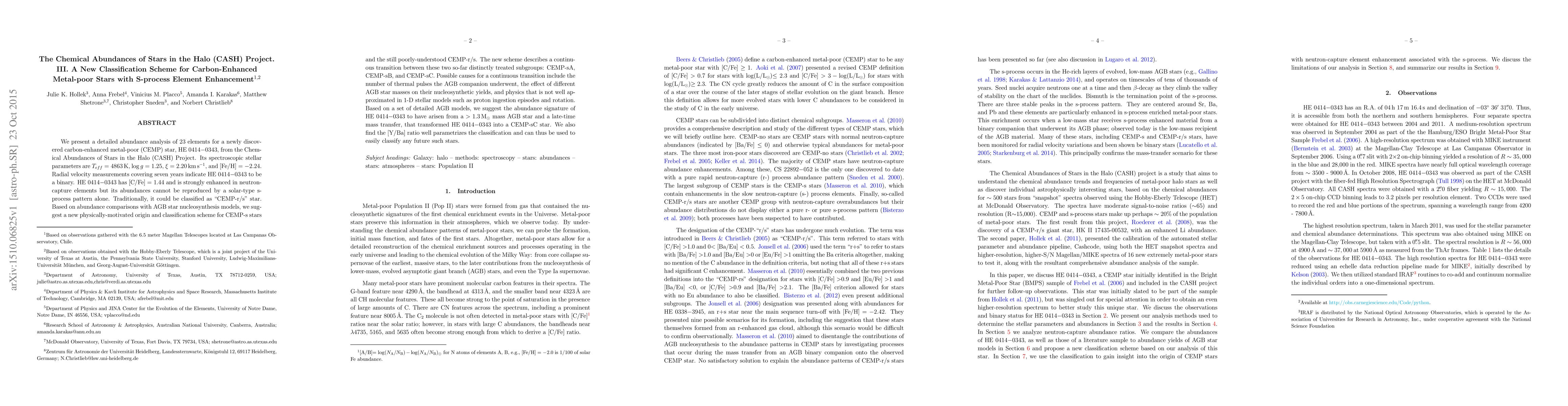 This paper introduces a new classification scheme for carbon-enhanced metal-poor stars with s-process enhancements, proposing a continuum between CEMP-sA, CEMP-sB, and CEMP-sC based on nucleosynthesis models of asymptotic giant branch stars. The star HE 0414-0343 is classified as CEMP-sC, suggesting its abundance signature resulted from a late-time mass transfer from a >1.3 M_sun AGB star.