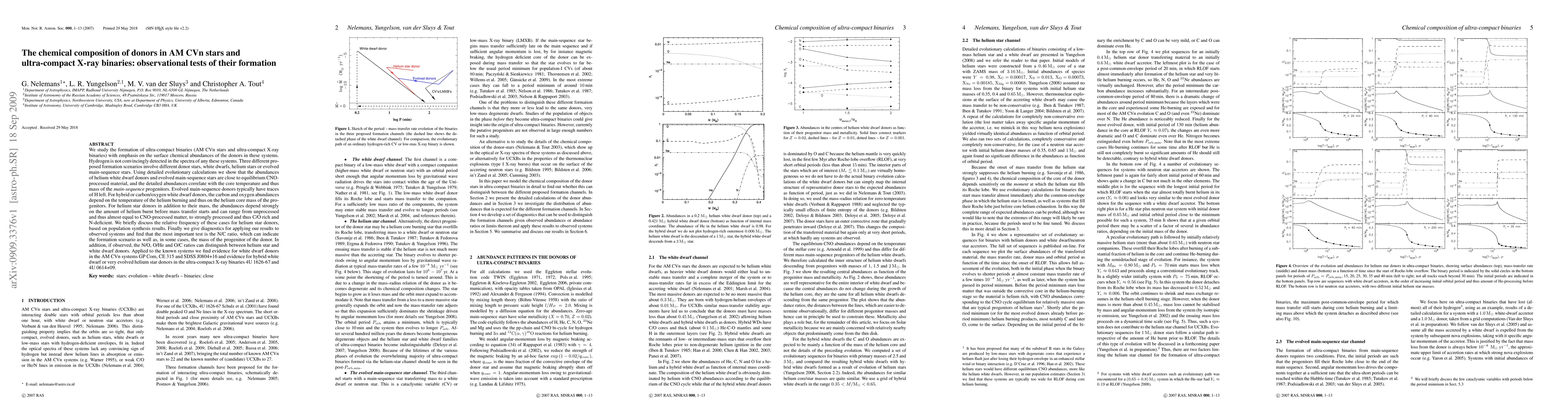 We study the formation of ultra-compact binaries (AM CVn stars and ultra-compact X-ray binaries) with emphasis on the surface chemical abundances of the donors in these systems. Hydrogen is not convincingly detected in the spectra of these systems. Three different proposed formation scenarios involve different donor stars, white dwarfs, helium stars or evolved main-sequence stars. Using detailed evolutionary calculations we show that the abundances of helium WD donors and evolved main-sequence stars are close to equilibrium CNO-processed material, and the detailed abundances correlate with the core temperature and thus mass of the MS progenitors. Evolved MS donors typically have traces of H left. For hybrid or CO white dwarf donors, the carbon and oxygen abundances depend on the temperature of the helium burning and thus on the helium core mass of the progenitors. For helium star donors in addition to their mass, the abundances depend strongly on the amount of helium burnt before mass transfer starts and can range from unprocessed and thus almost equal to CNO-processed matter, to strongly processed and thus C/O rich and N-deficient. We briefly discuss the relative frequency of these cases for helium star donors, based on population synthesis results. Finally we give diagnostics for applying our results to observed systems and find that the most important test is the N/C ratio, which can indicate the formation scenario as well as, in some cases, the mass of the progenitor of the donor. In addition, if observed, the N/O, O/He and O/C ratios can distinguish between helium star and WD donors. Applied to the known systems we find evidence for WD donors in the AM CVn systems GP Com, CE 315 and SDSS J0804+16 and evidence for hybrid WD or very evolved helium star donors in the UCXBs 4U 1626-67 and 4U 0614+09. [Abridged]