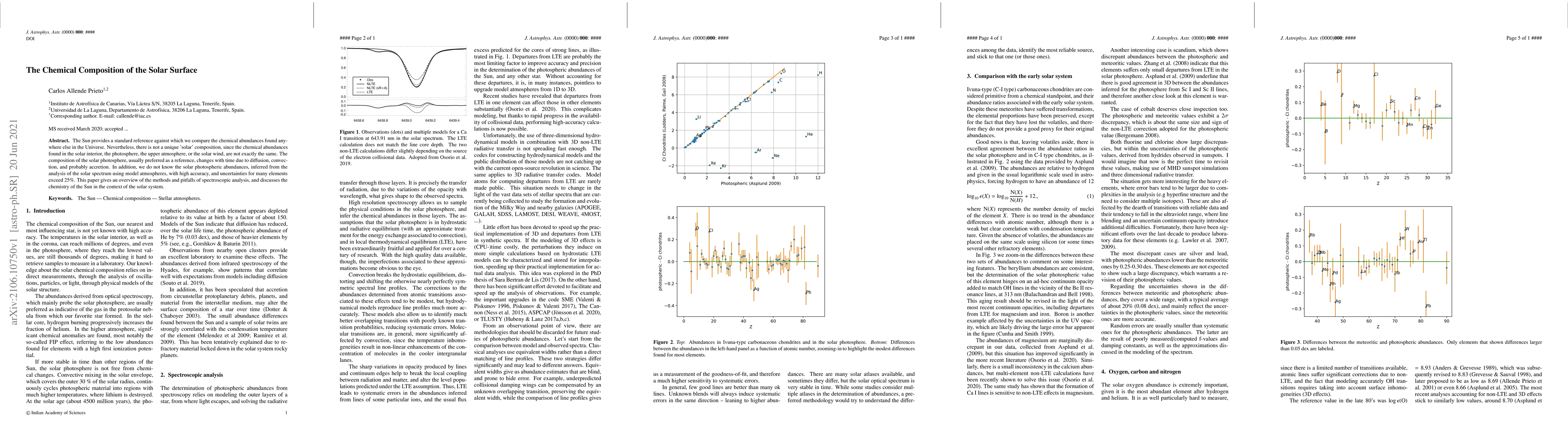 The Sun provides a standard reference against which we compare the chemical abundances found anywhere else in the Universe. Nevertheless, there is not a unique 'solar' composition, since the chemical abundances found in the solar interior, the photosphere, the upper atmosphere, or the solar wind, are not exactly the same. The composition of the solar photosphere, usually preferred as a reference, changes with time due to diffusion, convection, and probably accretion. In addition, we do not know the solar photospheric abundances, inferred from the analysis of the solar spectrum using model atmospheres, with high accuracy, and uncertainties for many elements exceed 25%. This paper gives an overview of the methods and pitfalls of spectroscopic analysis, and discusses the chemistry of the Sun in the context of the solar system.