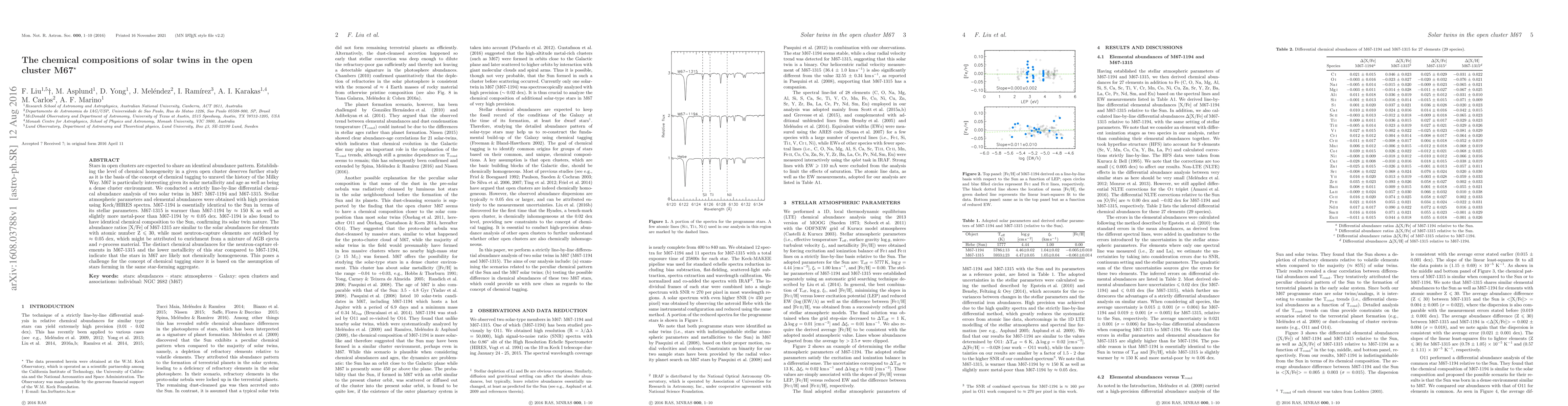This paper investigates the chemical compositions of two solar twins in the M67 open cluster, revealing that while M67-1194 matches the Sun's chemical composition, M67-1315 shows slightly different abundances, particularly in neutron-capture elements, challenging the notion of chemical homogeneity in star-forming regions.