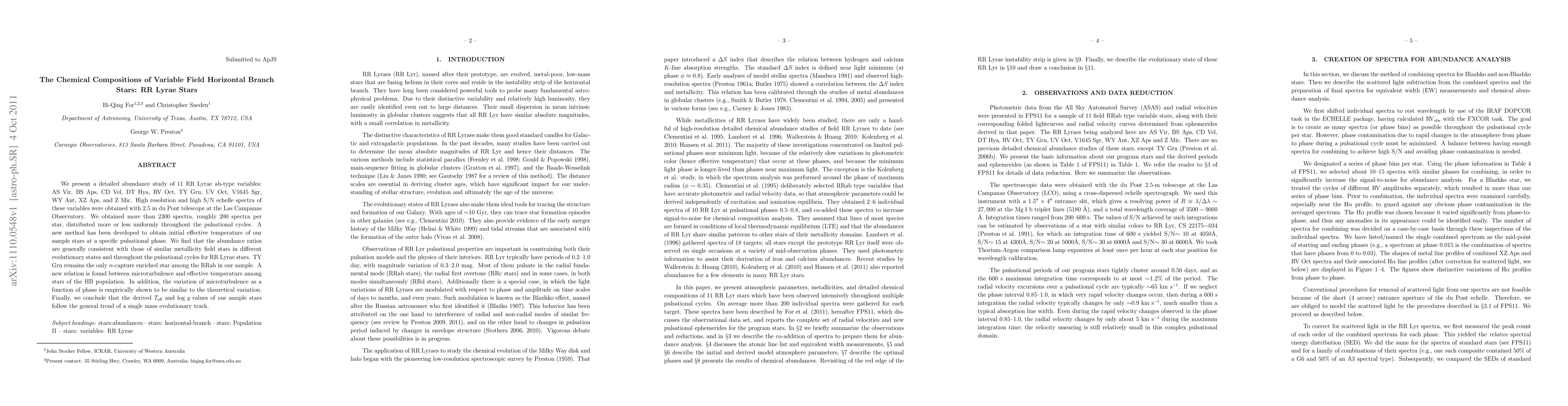 A new study of 11 RR Lyrae stars analyzed their chemical compositions using high-resolution spectra, finding that they generally match similar metallicity field stars in different evolutionary states. The study also discovered a relationship between microturbulence and effective temperature among the stars.