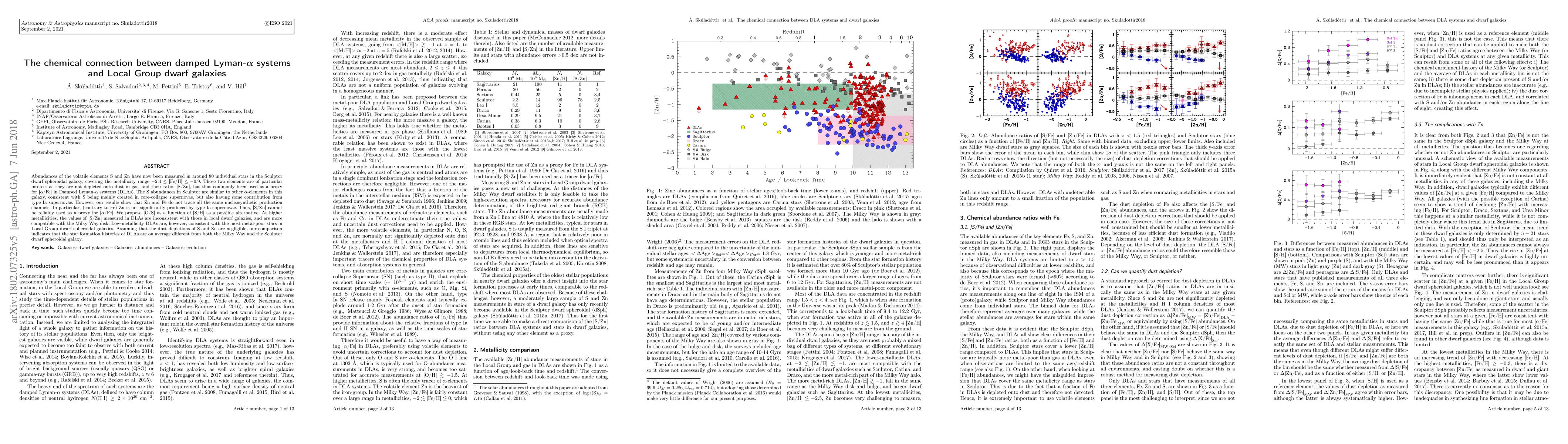 Abundances of the volatile elements S and Zn have now been measured in around 80 individual stars in the Sculptor dwarf spheroidal galaxy, covering the metallicity range $-2.4\leq\text{[Fe/H]}\leq-0.9$. These two elements are of particular interest as they are not depleted onto dust in gas, and their ratio, [S/Zn], has thus commonly been used as a proxy for [$\alpha$/Fe] in Damped Lyman-$\alpha$ systems. The S abundances in Sculptor are similar to other $\alpha$-elements in this galaxy, consistent with S being mainly created in core-collapse supernovae, but also having some contribution from supernovae Type Ia. However, our results show that Zn and Fe do not trace all the same nucleosynthetic production channels. In particular, (contrary to Fe) Zn is not significantly produced by supernovae Type Ia. Thus, [S/Zn] cannot be reliably used as a proxy for [$\alpha$/Fe]. We propose [O/S] as a function of [S/H] as a possible alternative. At higher metallicities, the values of [S/Zn] measured in Damped Lyman-$\alpha$ systems are inconsistent with those in local dwarf galaxies, and are more compatible with the Milky Way disk. Low-metallicity Damped Lyman-$\alpha$ systems are, however, consistent with the most metal-poor stars in Local Group dwarf spheroidal galaxies. Assuming that the dust depletions of S and Zn are negligible, our comparison indicates that the star formation histories of Damped Lyman-$\alpha$ systems are on average different from both the Milky Way and the Sculptor dwarf spheroidal galaxy.