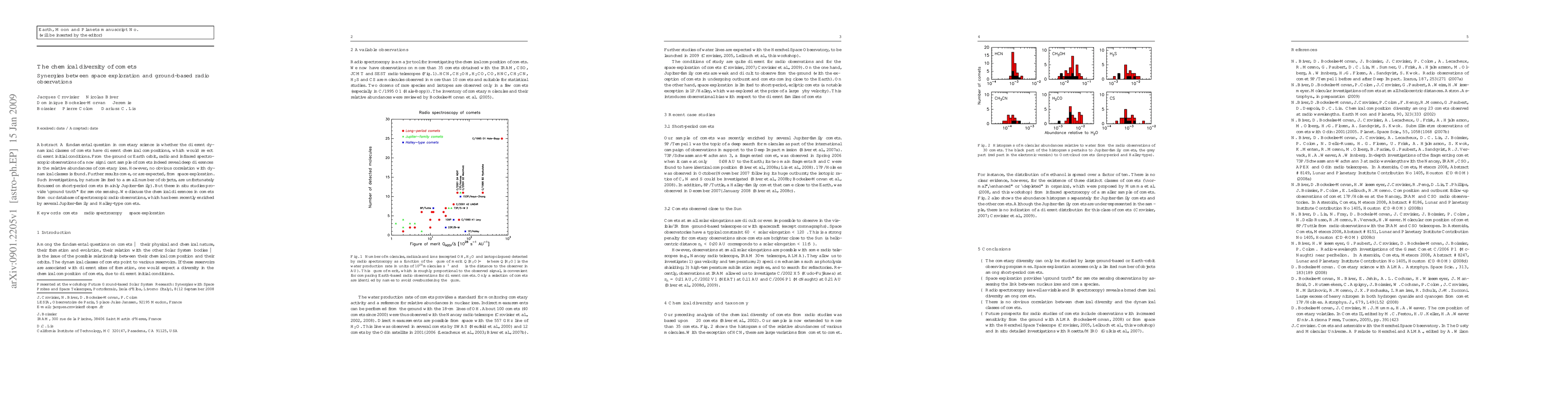 A fundamental question in cometary science is whether the different dynamical classes of comets have different chemical compositions, which would reflect different initial conditions. From the ground or Earth orbit, radio and infrared spectroscopic observations of a now significant sample of comets indeed reveal deep differences in the relative abundances of cometary ices. However, no obvious correlation with dynamical classes is found. Further results come, or are expected, from space exploration. Such investigations, by nature limited to a small number of objects, are unfortunately focussed on short-period comets (mainly Jupiter-family). But these in situ studies provide "ground truth" for remote sensing. We discuss the chemical differences in comets from our database of spectroscopic radio observations, which has been recently enriched by several Jupiter-family and Halley-type comets.