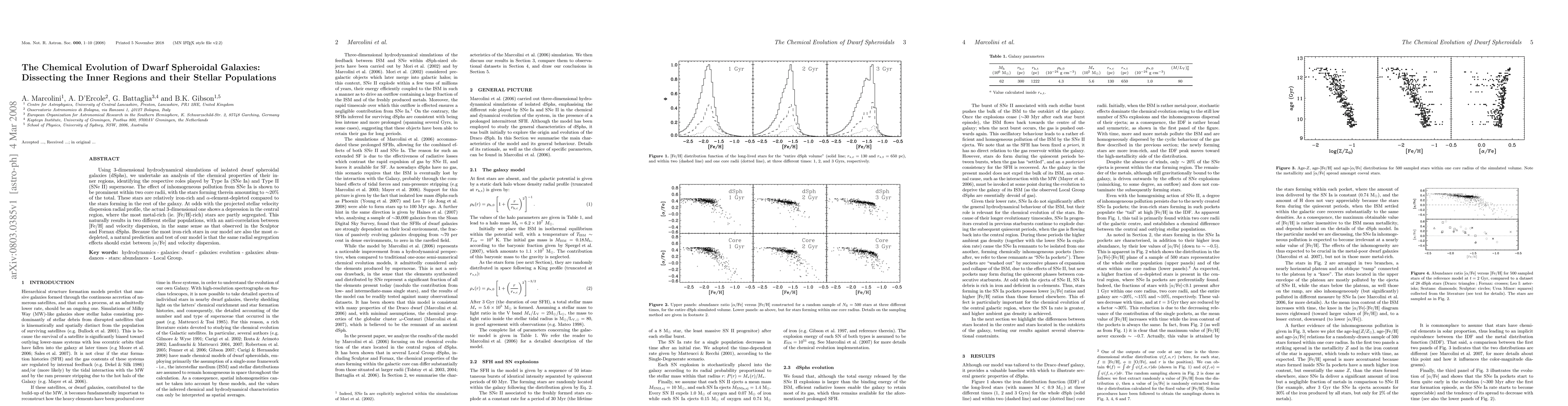 Using 3-dimensional hydrodynamical simulations of isolated dwarf spheroidal galaxies (dSphs), we undertake an analysis of the chemical properties of their inner regions, identifying the respective roles played by Type Ia (SNe Ia) and Type II (SNe II) supernovae. The effect of inhomogeneous pollution from SNe Ia is shown to be prominent within two core radii, with the stars forming therein amounting to ~20% of the total. These stars are relatively iron-rich and alpha-element-depleted compared to the stars forming in the rest of the galaxy. At odds with the projected stellar velocity dispersion radial profile, the actual 3-dimensional one shows a depression in the central region, where the most metal-rich (ie. [Fe/H]-rich) stars are partly segregated. This naturally results in two different stellar populations, with an anti-correlation between [Fe/H] and velocity dispersion, in the same sense as that observed in the Sculptor and Fornax dSphs. Because the most iron-rich stars in our model are also the most alpha-depleted, a natural prediction and test of our model is that the same radial segregation effects should exist between [alpha/Fe] and velocity dispersion.