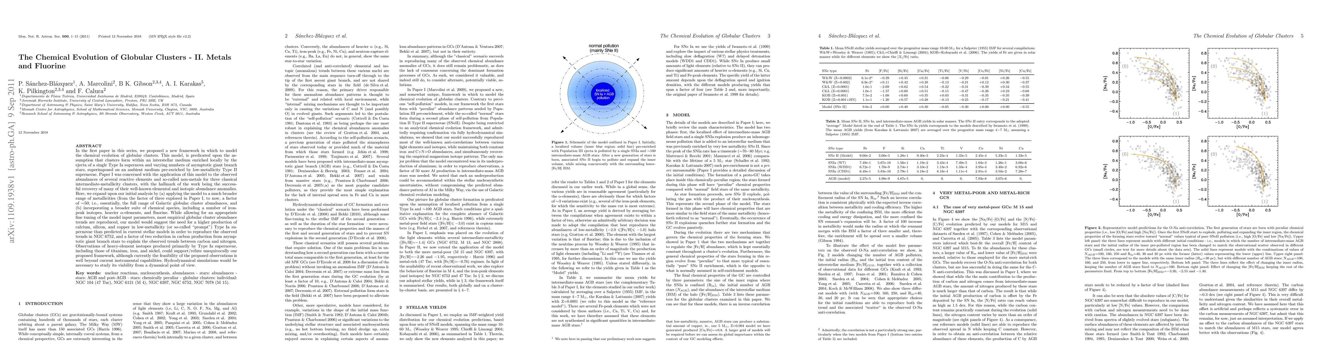 In the first paper in this series, we proposed a new framework in which to model the chemical evolution of globular clusters. This model, is predicated upon the assumption that clusters form within an interstellar medium enriched locally by the ejecta of a single Type Ia supernova and varying numbers of asymptotic giant branch stars, superimposed on an ambient medium pre-enriched by low-metallicity Type II supernovae. Paper I was concerned with the application of this model to the observed abundances of several reactive elements and so-called non-metals for three classical intermediate-metallicity clusters, with the hallmark of the work being the successful recovery of many of their well-known elemental and isotopic abundance anomalies. Here, we expand upon our initial analysis by (a) applying the model to a much broader range of metallicities (from the factor of three explored in Paper I, to now, a factor of ~50; i.e., essentially, the full range of Galactic globular cluster abundances, and (b) incorporating a broader suite of chemical species, including a number of iron-peak isotopes, heavier alpha-elements, and fluorine. While most empirical globular cluster abundance trends are reproduced, our model would suggest the need for a higher production of Ca, Si, and Cu in low-metallicity (or so-called "prompt") Type Ia supernovae than predicted in current stellar models in order to reproduce the observed trends in NGC 6752, and a factor of two reduction in carbon production from asymptotic giant branch stars to explain the observed trends between carbon and nitrogen. Observations of heavy-element isotopes produced primarily by Type Ia supernovae, including those of titanium, iron, and nickel, could support/refute unequivocally our proposed framework. Hydrodynamical simulations would be necessary to study its viability from a dynamical point of view.