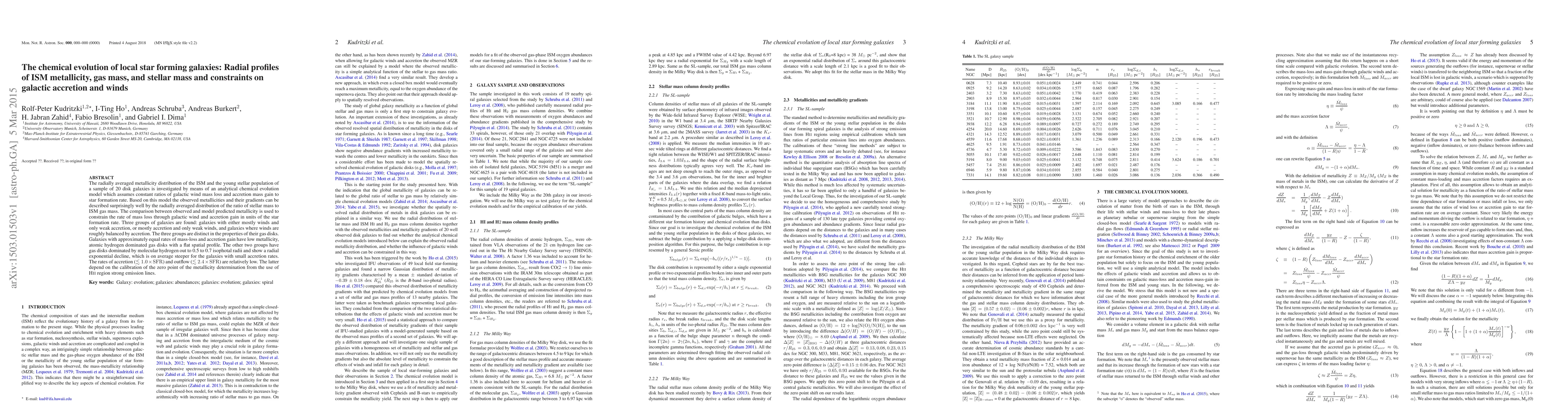 A study of 20 disk galaxies found that their metallicity and gas mass profiles can be explained by a simple model based on the ratio of stellar mass to ISM gas mass. The research identifies three groups of galaxies with different accretion and wind patterns, shedding light on galactic evolution.