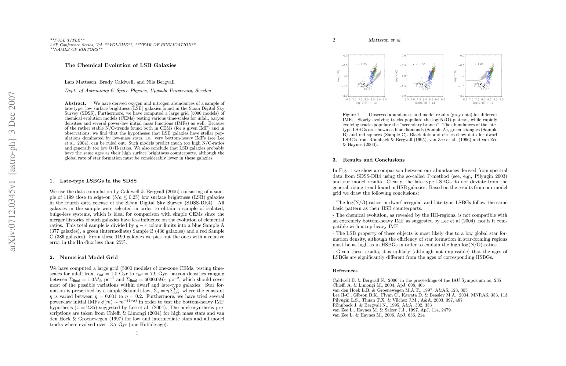 We have derived oxygen and nitrogen abundances of a sample of late-type, low surface brightness (LSB) galaxies found in the Sloan Digital Sky Survey (SDSS). Furthermore, we have computed a large grid (5000 models) of chemical evolution models (CEMs) testing various time-scales for infall, baryon densities and several power-law initial mass functions (IMFs) as well. Because of the rather stable N/O-trends found both in CEMs (for a given IMF) and in observations, we find that the hypotheses that LSB galaxies have stellar populations dominated by low-mass stars, i.e., very bottom-heavy IMFs (see Lee et al. 2004), can be ruled out. Such models predict much too high N/O-ratios and generally too low O/H-ratios. We also conclude that LSB galaxies probably have the same ages as their high surface brightness counterparts, although the global rate of star formation must be considerably lower in these galaxies.