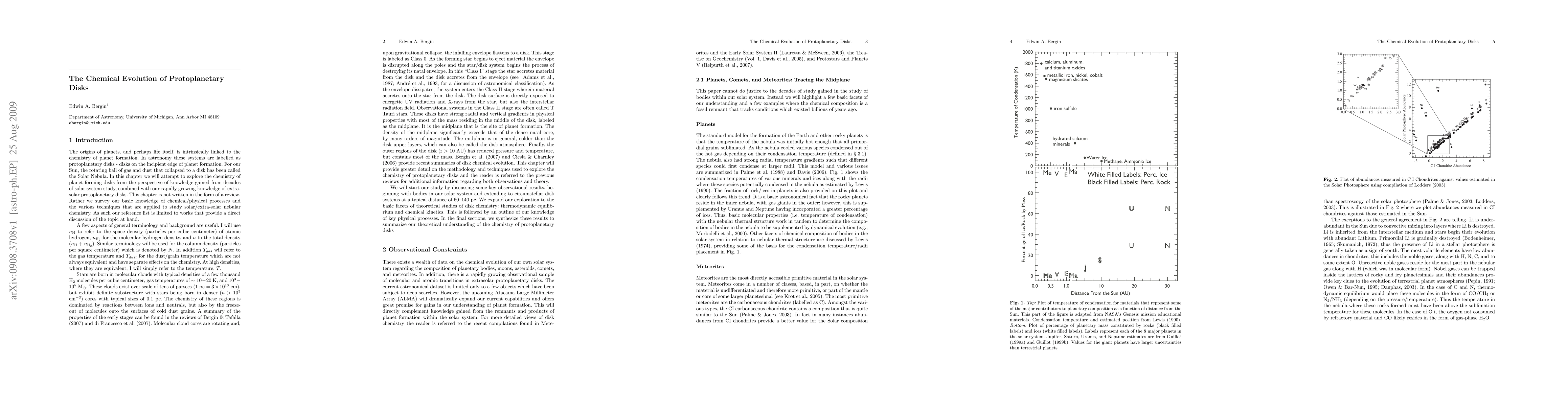 The origins of planets, and perhaps life itself, is intrinsically linked to the chemistry of planet formation. In this chapter we will attempt to explore the chemistry of planet-forming disks from the perspective of knowledge gained from decades of solar system study, combined with our rapidly growing knowledge of extra-solar protoplanetary disks. Our aim is not to provide a comprehensive survey of the literature, but rather to present the chemical and physical tools that are used to explore chemical evolution during the earliest stages of planet formation. We include a discussion of observational constraints from our solar system and extra-solar disks, thermodynamic equilibrium and chemical kinetics, and the physical prescriptions for various important aspects (X-ray/UV irradiation, thermal structure, molecular adsorption/desorption, ..) that are used in current models. The chapter is aimed for young researchers.