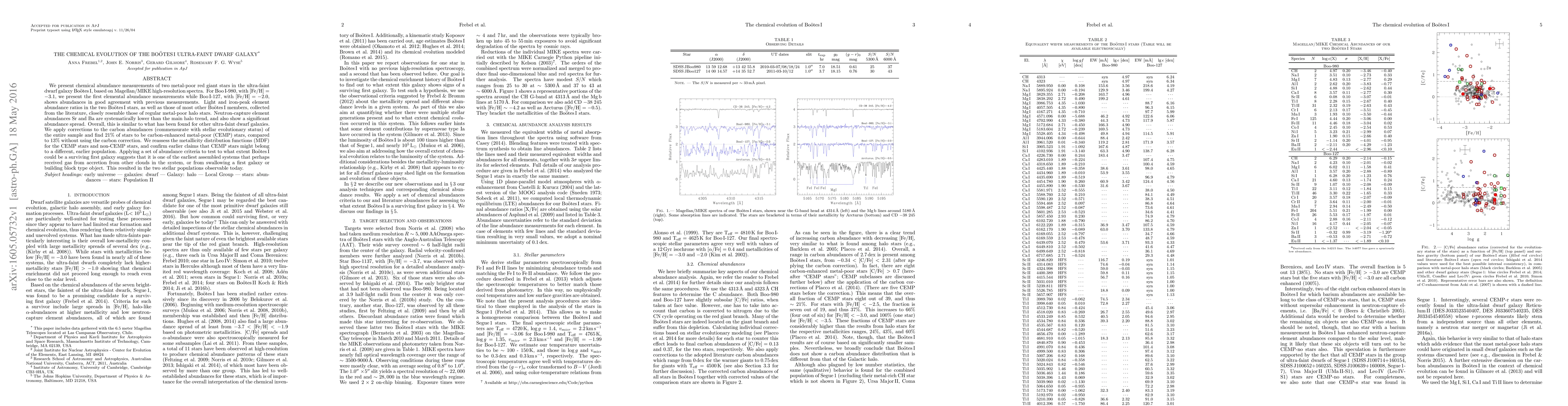This study investigates the chemical evolution of the Bootes I ultra-faint dwarf galaxy using high-resolution spectra of two red giant stars, revealing similarities in light and iron-peak element abundances to regular metal-poor halo stars. The findings suggest Bootes I may be one of the earliest assembled galaxies, potentially formed through accretion or the incorporation of a first galaxy building block.