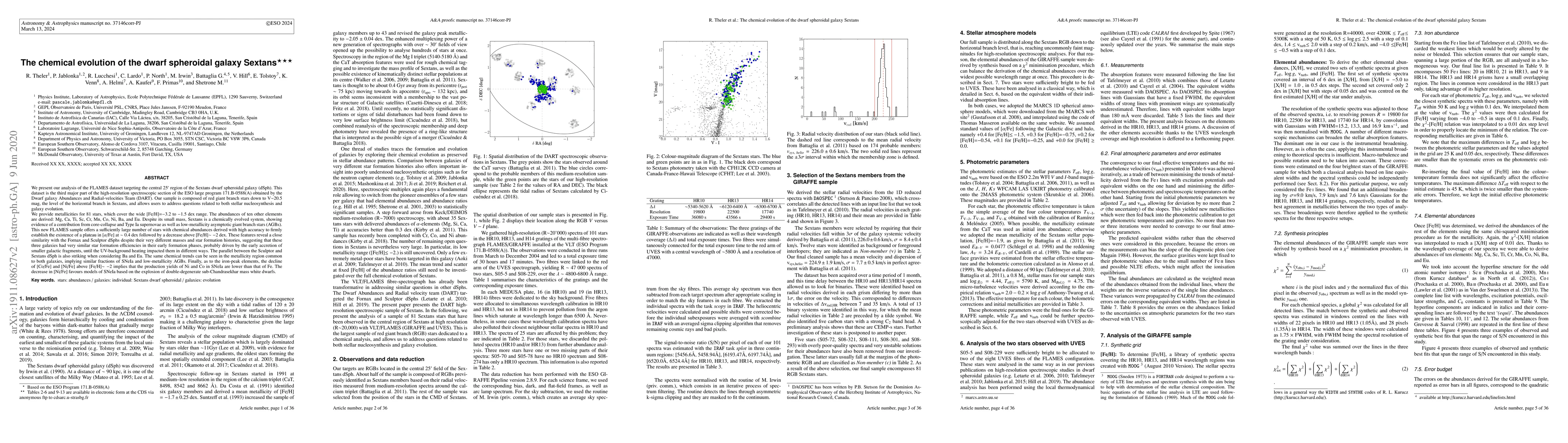 This study analyzes the FLAMES dataset of the dwarf Spheroidal galaxy Sextans, revealing a chemically evolved system with contributions from various supernova types and low metallicity AGBs. The analysis shows a plateau in [$\alpha$/Fe] at $\sim 0.4$ dex, followed by a decrease above [Fe/H]$\sim-2$ dex, suggesting similar early star formation efficiencies among Sextans, Fornax, and Sculptor dSphs.