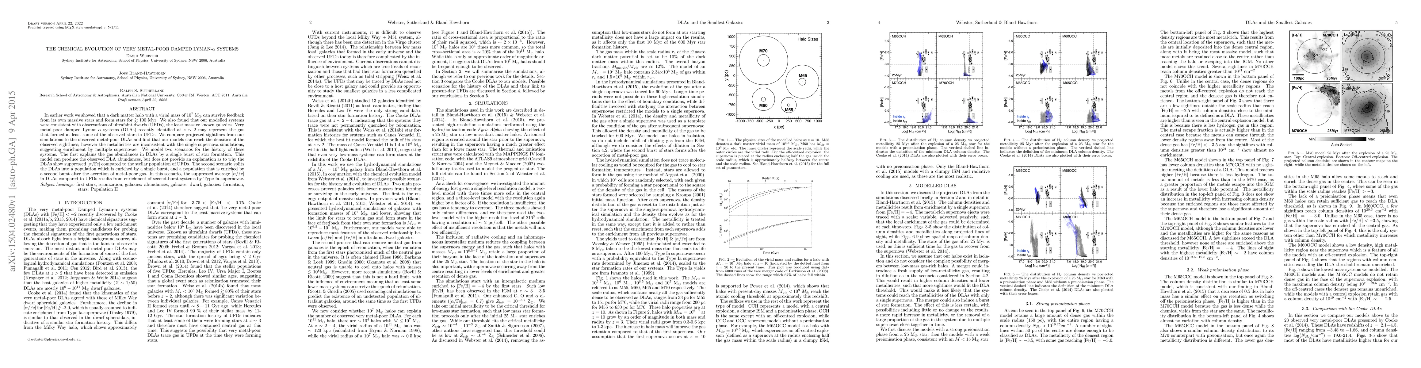 In earlier work we showed that a dark matter halo with a virial mass of $10^7$ M$_\odot$ can survive feedback from its own massive stars and form stars for $\gtrsim100$ Myr. We also found that our modelled systems were consistent with observations of ultrafaint dwarfs (UFDs), the least massive known galaxies. Very metal-poor damped Lyman-$\alpha$ systems (DLAs) recently identified at $z\sim2$ may represent the gas that formed at least some of the observed stars in UFDs. We compare projected sightlines from our simulations to the observed metal-poor DLAs and find that our models can reach the densities of the observed sightlines; however the metallicities are inconsistent with the single supernova simulations, suggesting enrichment by multiple supernovae. We model two scenarios for the history of these systems. The first explains the gas abundances in DLAs by a single burst of star formation. This model can produce the observed DLA abundances, but does not provide an explanation as to why the DLAs show suppressed [$\alpha$/Fe] compared to the stellar population of UFDs. The second scenario splits the DLAs into a population which is enriched by a single burst, and a population that is enriched by a second burst after the accretion of metal-poor gas. In this scenario, the suppressed average [$\alpha$/Fe] in DLAs compared to UFDs results from enrichment of second-burst systems by Type Ia supernovae.