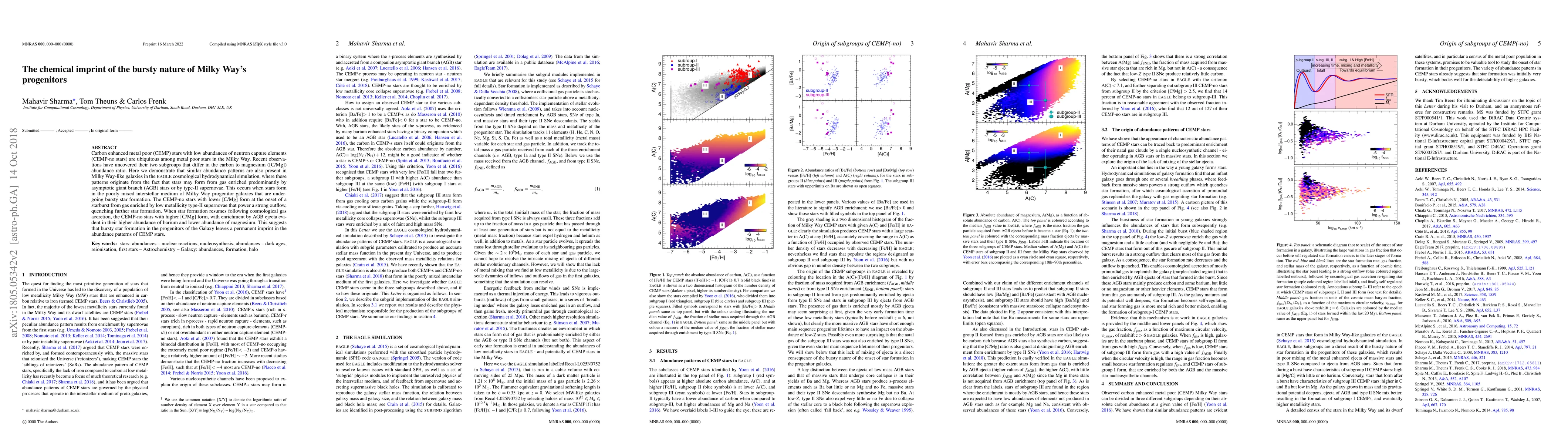 This paper investigates the chemical signatures of bursty star formation in Milky Way progenitor galaxies, showing that CEMP-no stars exhibit distinct abundance patterns depending on whether they form from gas enriched by type-II supernovae or AGB stars. The study reveals that bursty star formation leaves a lasting imprint on the chemical composition of these stars.