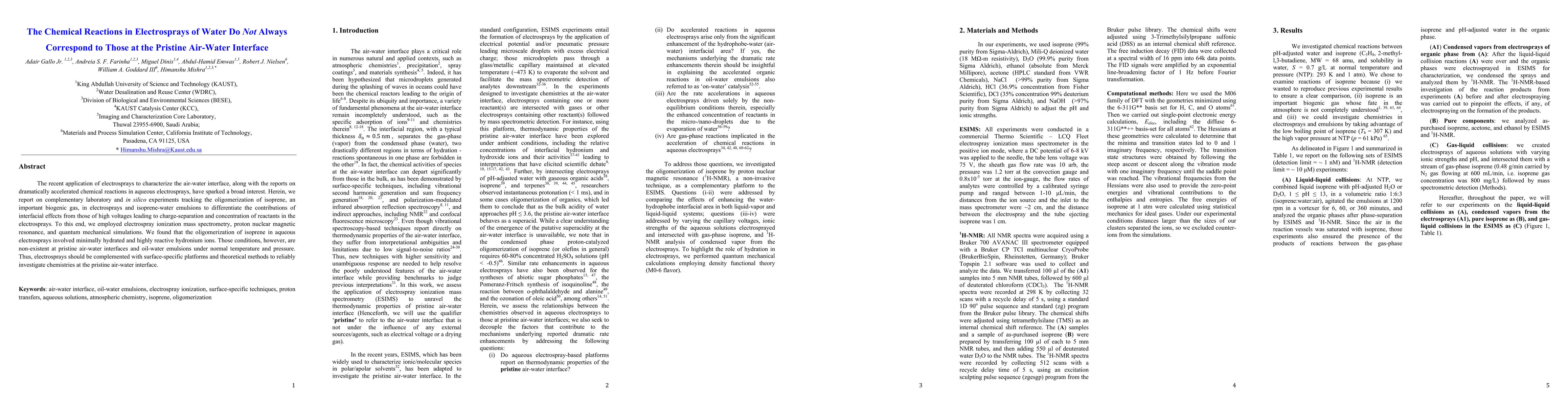 Electrosprays do not accurately represent chemical reactions at pristine air-water interfaces; instead, they involve highly reactive ions not present at these surfaces.