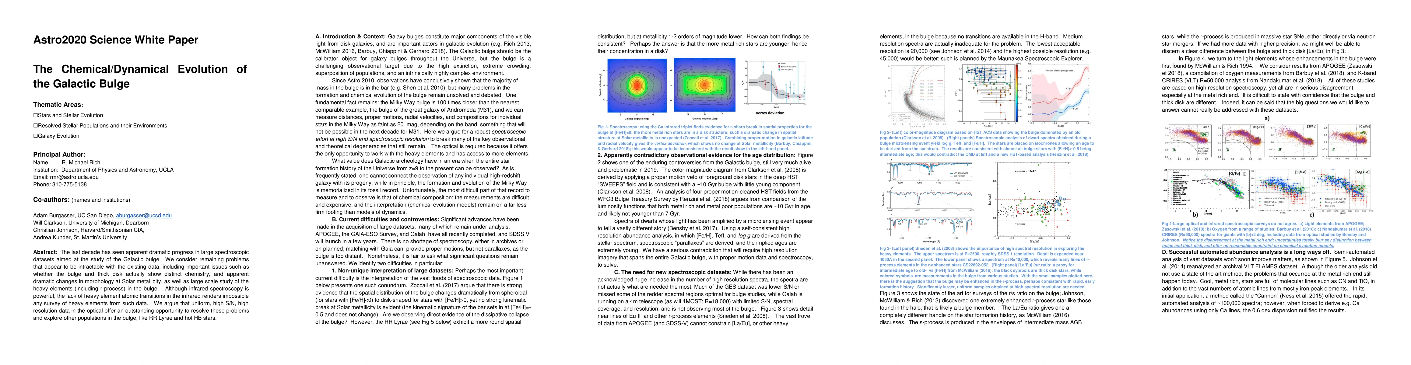 The last decade has seen apparent dramatic progress in large spectroscopic datasets aimed at the study of the Galactic bulge. We consider remaining problems that appear to be intractable with the existing data, including important issues such as whether the bulge and thick disk actually show distinct chemistry, and apparent dramatic changes in morphology at Solar metallicity, as well as large scale study of the heavy elements (including r-process) in the bulge. Although infrared spectroscopy is powerful, the lack of heavy element atomic transitions in the infrared renders impossible any survey of heavy elements from such data. We argue that uniform, high S/N, high resolution data in the optical offer an outstanding opportunity to resolve these problems and explore other populations in the bulge, such as RR Lyrae and hot HB stars.