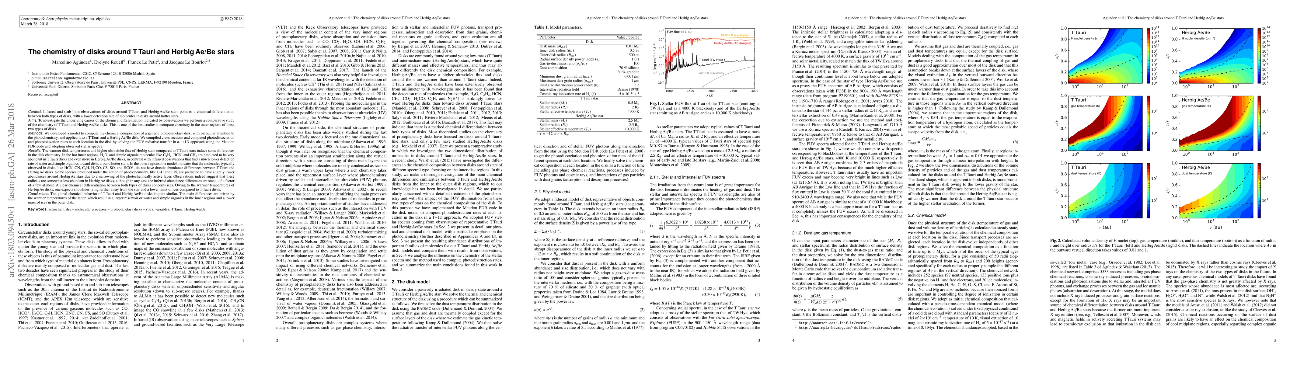 The study performs a comparative chemical model analysis of T Tauri and Herbig Ae/Be disks, focusing on photochemistry to understand differences in observed molecular abundances.