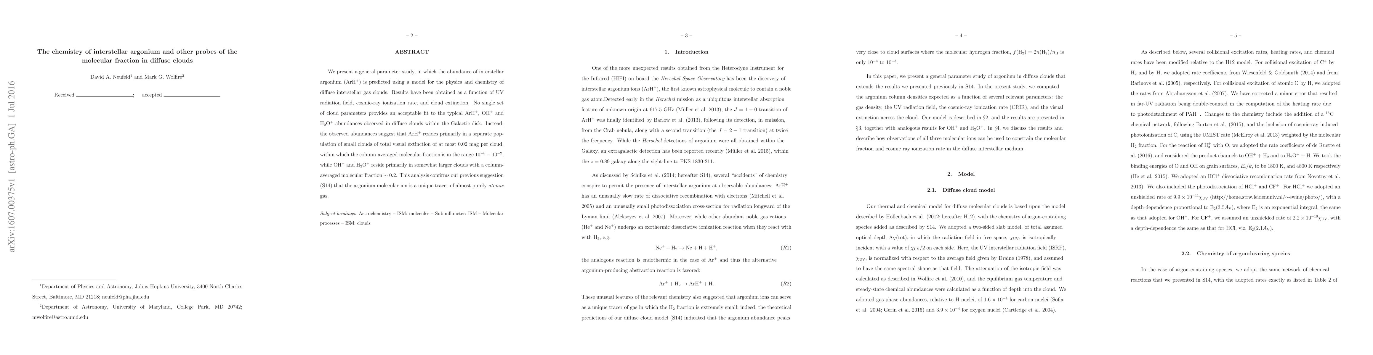 We present a general parameter study, in which the abundance of interstellar argonium (ArH$^+$) is predicted using a model for the physics and chemistry of diffuse interstellar gas clouds. Results have been obtained as a function of UV radiation field, cosmic-ray ionization rate, and cloud extinction. No single set of cloud parameters provides an acceptable fit to the typical ArH$^+$, OH$^+$ and $\rm H_2O^+$ abundances observed in diffuse clouds within the Galactic disk. Instead, the observed abundances suggest that ArH$^+$ resides primarily in a separate population of small clouds of total visual extinction of at most 0.02 mag per cloud, within which the column-averaged molecular fraction is in the range $10^{-5} - 10^{-2}$, while OH$^+$ and $\rm H_2O^+$ reside primarily in somewhat larger clouds with a column-averaged molecular fraction $\sim 0.2$. This analysis confirms our previous suggestion that the argonium molecular ion is a unique tracer of almost purely atomic gas.