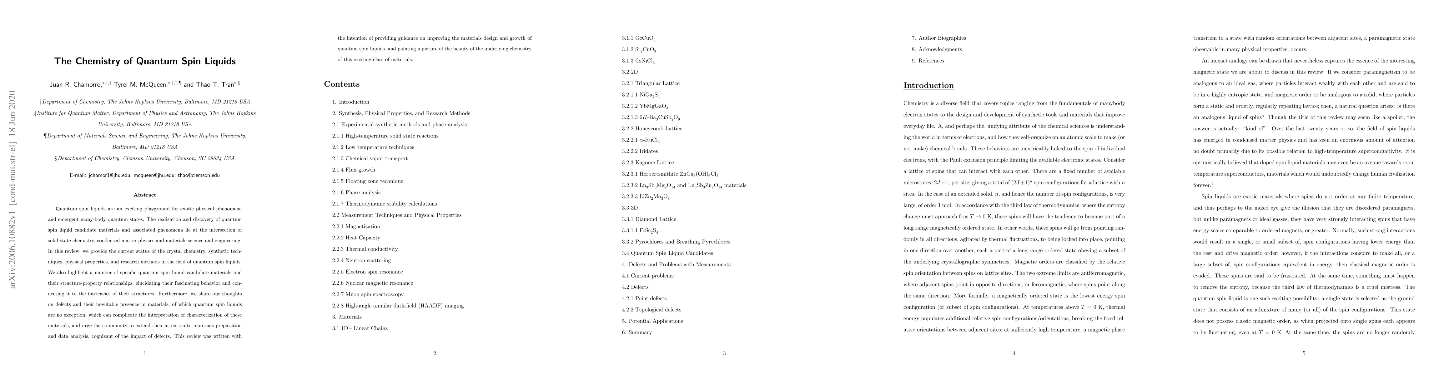 This review discusses the current advancements in the chemistry and materials science of quantum spin liquids, highlighting synthetic techniques, physical properties, and research methods, while emphasizing the role of defects in material characterization and urging improved materials design.