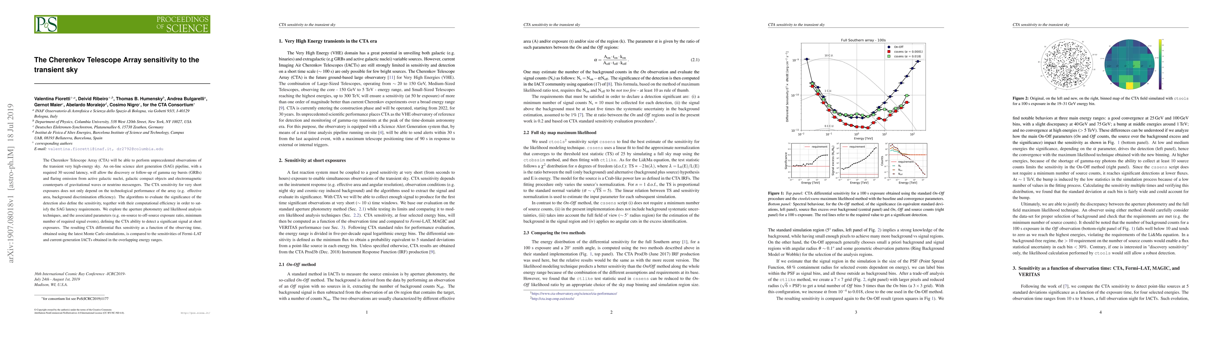 The Cherenkov Telescope Array (CTA) will enable groundbreaking observations of transient very high-energy phenomena, with a 30-second alert system for gamma-ray bursts and flaring emissions. The CTA's sensitivity for short exposures hinges on both technological performance and detection algorithms, which are evaluated using Monte Carlo simulations and are compared to current instruments like Fermi-LAT and existing IACTs.
