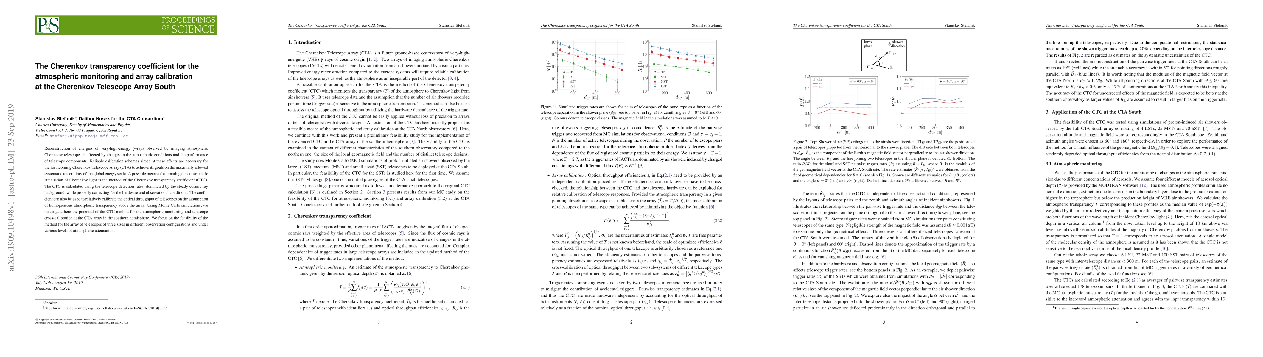 This paper investigates the Cherenkov transparency coefficient for calibrating the Cherenkov Telescope Array (CTA) in the southern hemisphere, focusing on its potential for atmospheric monitoring and telescope cross-calibration under various atmospheric conditions using Monte Carlo simulations. The study assesses the method's feasibility for different telescope sizes and configurations.