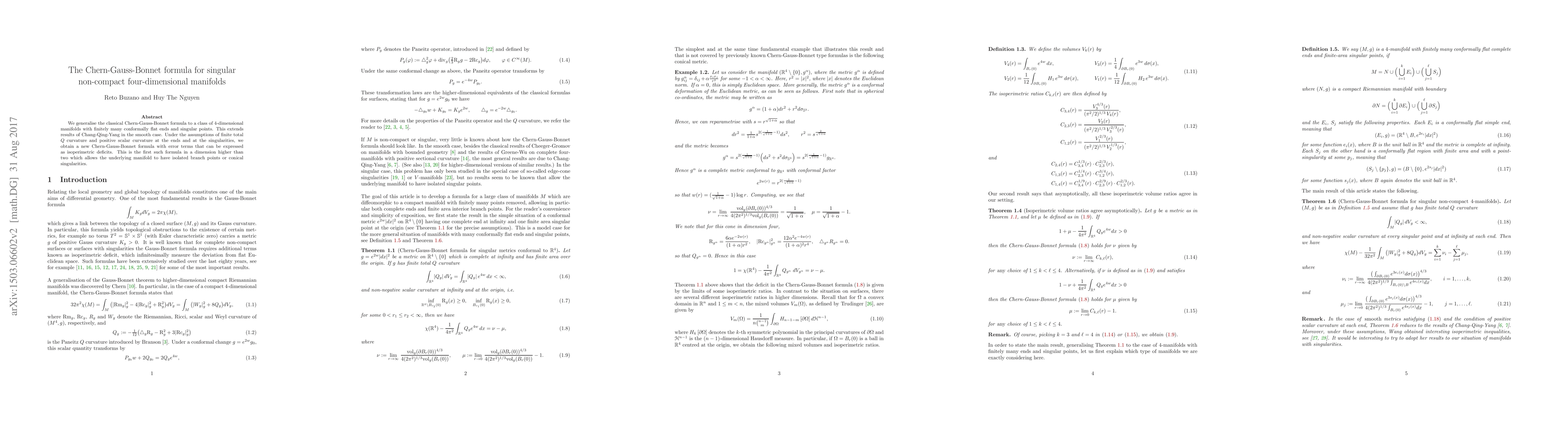 This paper extends the Chern-Gauss-Bonnet formula to singular non-compact four-dimensional manifolds with finitely many conformally flat ends and singular points. It introduces a new formula under assumptions of finite total Q curvature and positive scalar curvature, providing error terms expressed as isoperimetric deficits.