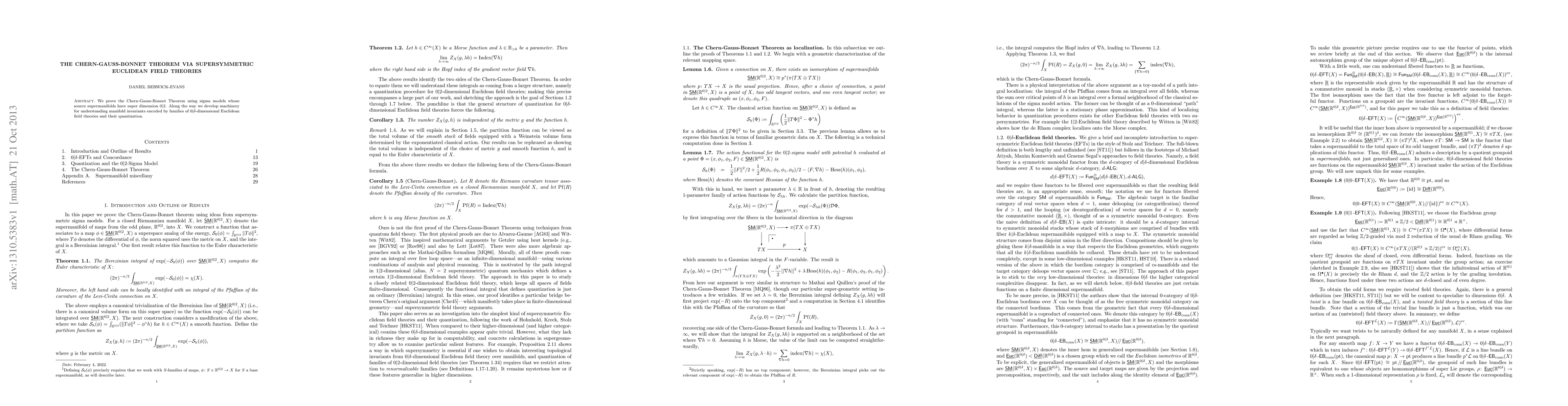 We prove the Chern-Gauss-Bonnet Theorem using sigma models whose source supermanifolds have super dimension 0|2. Along the way we develop machinery for understanding manifold invariants encoded by families of 0|n-dimensional Euclidean field theories and their quantization.
