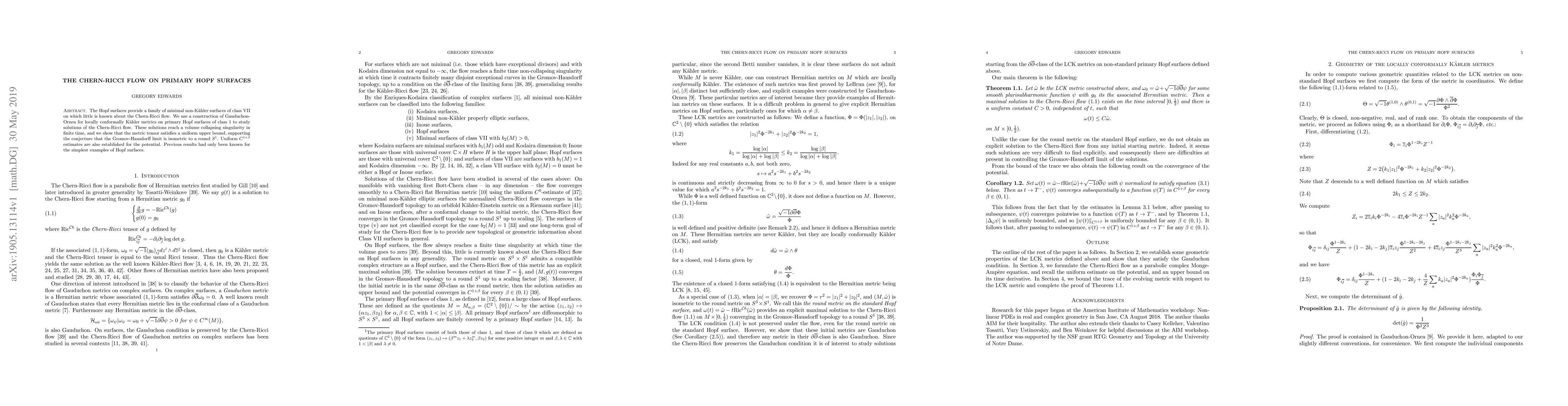 The study examines the Chern-Ricci flow on primary Hopf surfaces, revealing that solutions collapse in finite time with a uniform upper bound on the metric tensor, supporting the conjecture that the limit is isometric to a round $S^1$. Uniform $C^{1+\beta}$ estimates for the potential are also established.