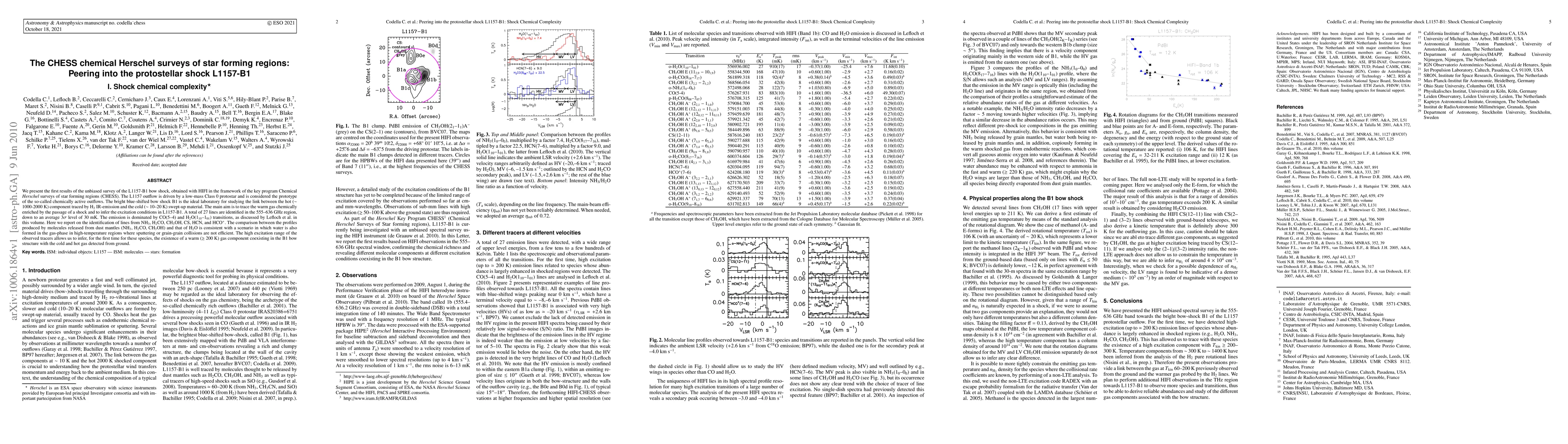 This research identifies 27 molecular lines in the L1157-B1 bow shock using Herschel's HIFI instrument, revealing a warm (>200K) gas component alongside cold and hot gas. The study suggests water (H2O) formation in high-temperature regions via gas-phase chemistry, not just from dust mantle release.