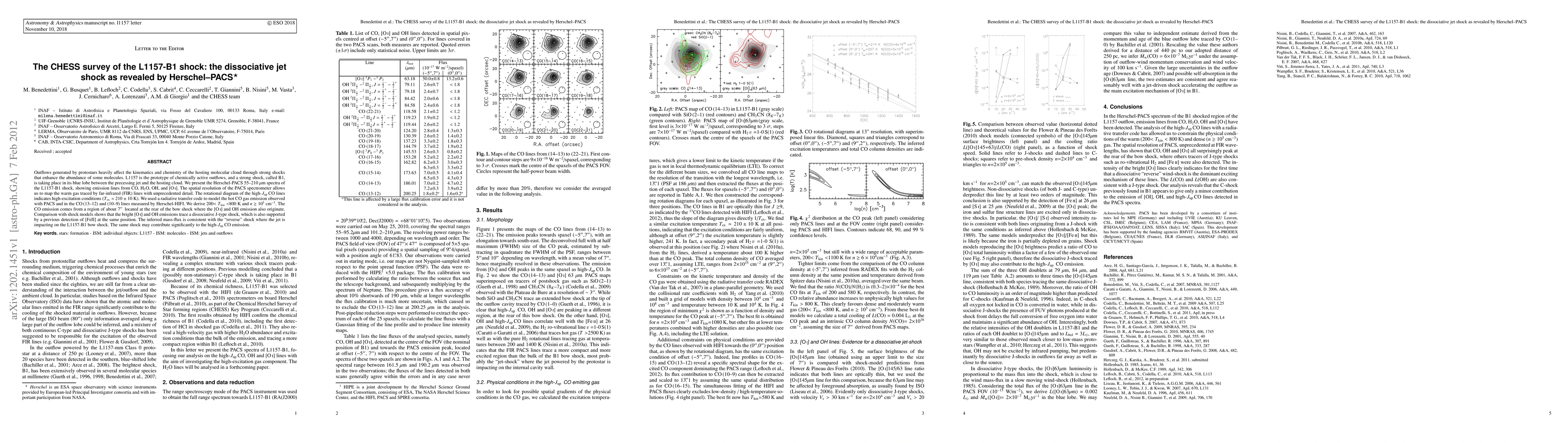 The CHESS survey reveals the L1157-B1 shock's dissociative jet shock using Herschel-PACS, showing high-excitation conditions and mapping warm gas with detail. The shock is identified as a dissociative J-type, impacting the jet's reverse shock and contributing to high-Jup CO emission.