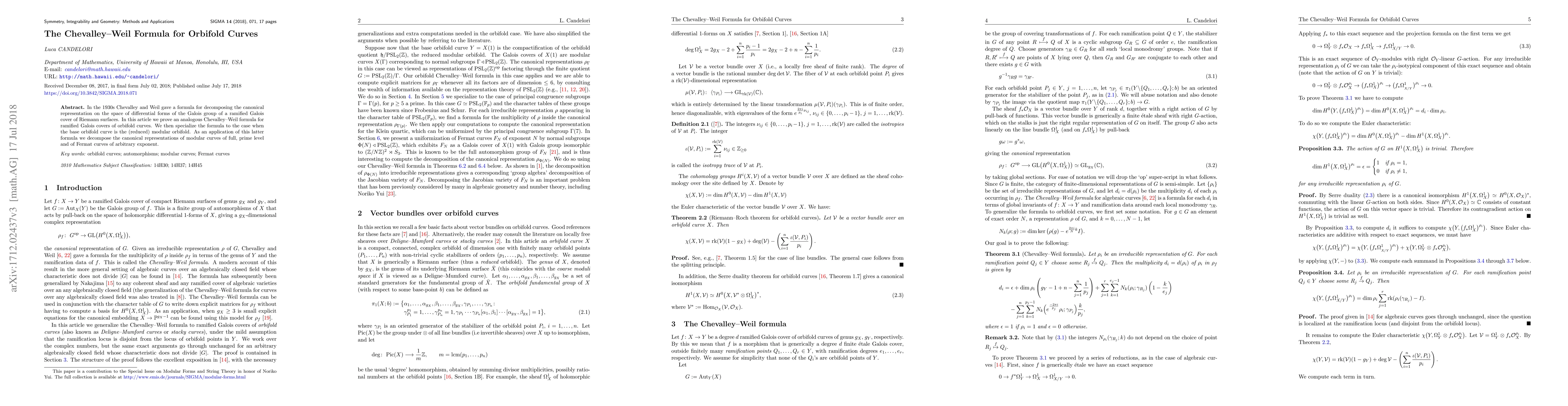 In the 1930s Chevalley and Weil gave a formula for decomposing the canonical representation on the space of differential forms of the Galois group of a ramified Galois cover of Riemann surfaces. In this article we prove an analogous Chevalley-Weil formula for ramified Galois covers of orbifold curves. We then specialize the formula to the case when the base orbifold curve is the (reduced) modular orbifold. As an application of this latter formula we decompose the canonical representations of modular curves of full, prime level and of Fermat curves of arbitrary exponent.