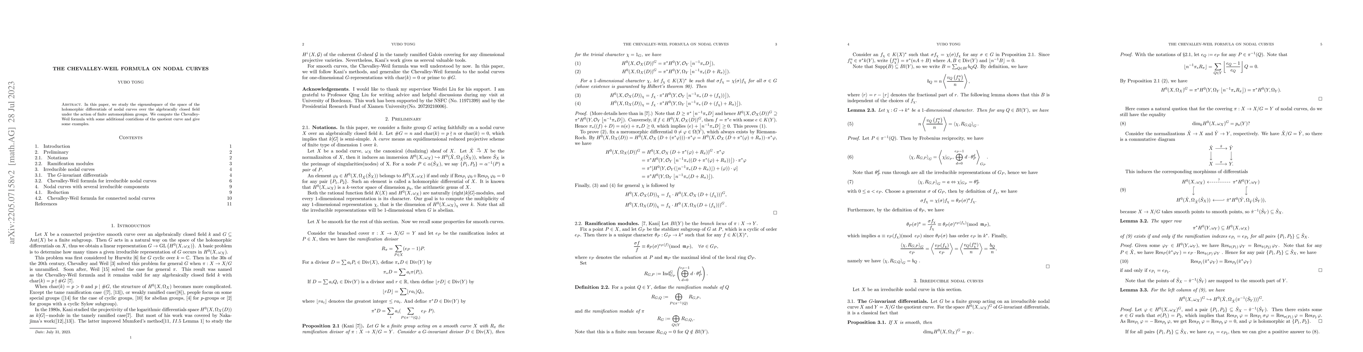 In this paper, we study the eigensubspace of the space of the holomorphic differentials of nodal curves over the algebracally closed field under the action of finite automorphism groups. We compute the Chevalley- Weil formula with some additional contidions of the quotient curve and give some examples.