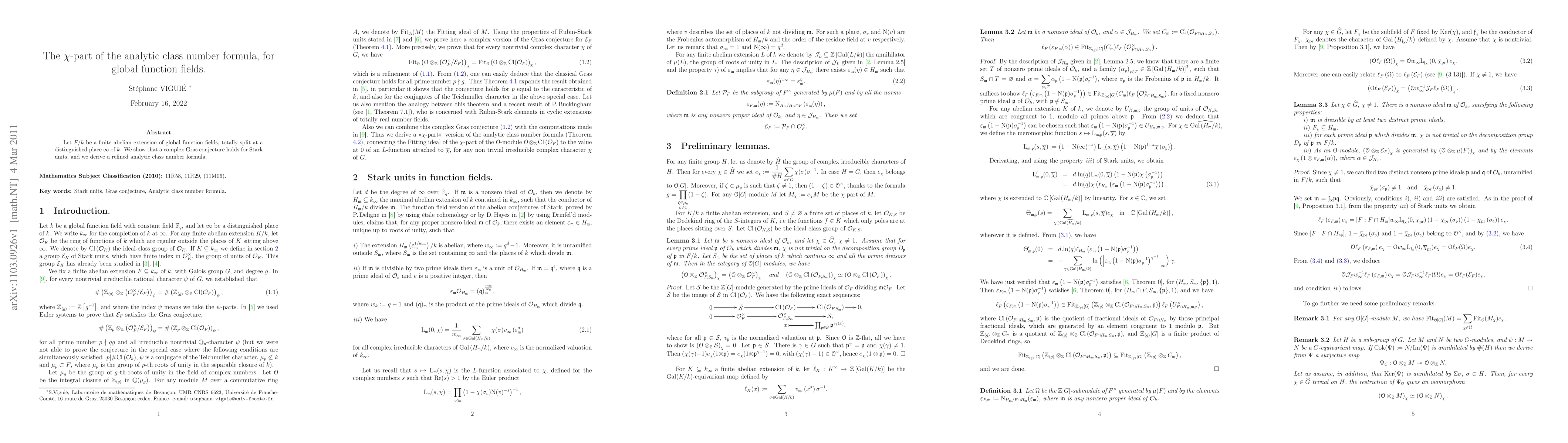 Let F/k be a finite abelian extension of global function fields, totally split at a distinguished place \infty. We prove that a complex Gras conjecture holds for a suitable group of Stark units, and we derive a refined analytic class number formula.