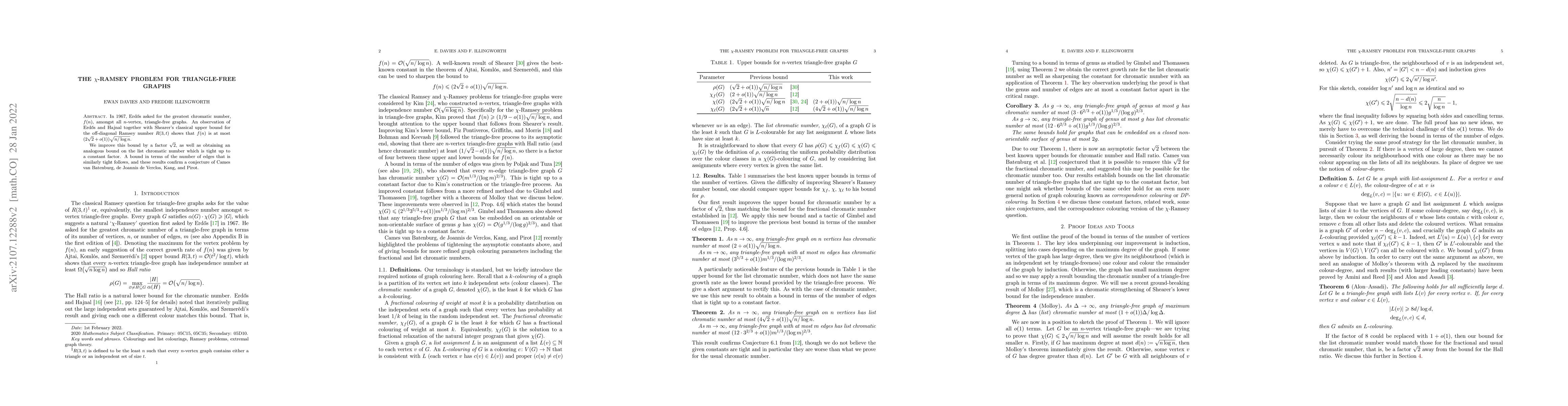 This paper improves the upper bound for the chromatic number $f(n)$ in triangle-free graphs, showing it is at most $( \sqrt{2} \sqrt{n/\log n})$, and provides a similarly tight bound for the list chromatic number. These results confirm a conjecture regarding the relationship between chromatic and edge-based bounds.