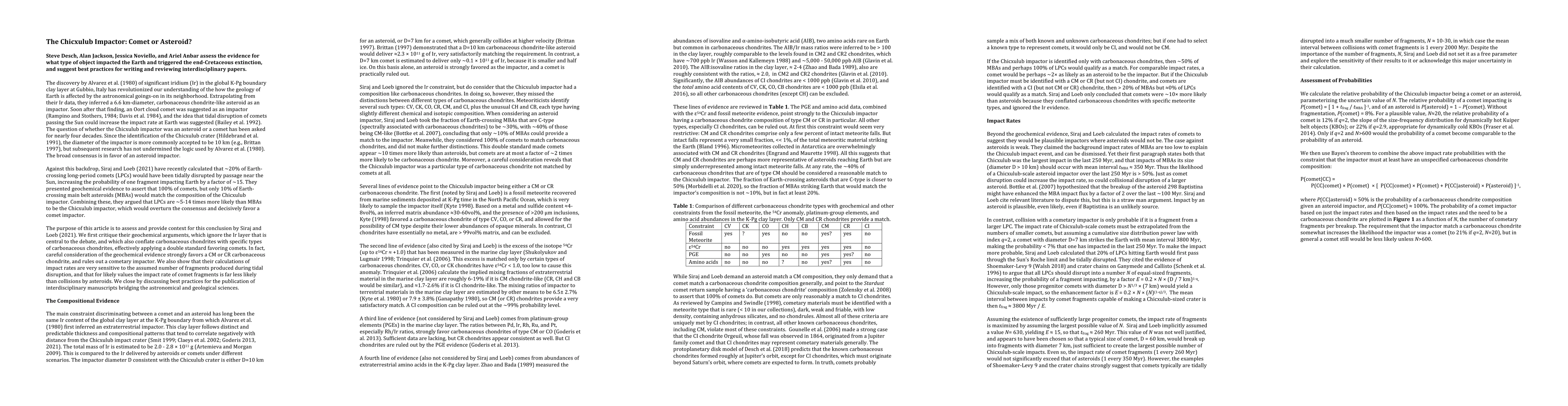 A recent paper by Siraj & Loeb (2021) entitled "Breakup of a long-period comet as the origin of the dinosaur extinction" attempts to revive the perennial debate about what type of body hit the Earth 66 million years ago, triggering the end-Cretaceous extinction. Here we critique the paper and assess the evidence it presents. To consider a comet more likely than an asteroid requires extreme assumptions about how comets fragment, conflation of carbonaceous chondrites with specific types of carbonaceous chondrites, and a blind eye to the evidence of the iridium layer.
