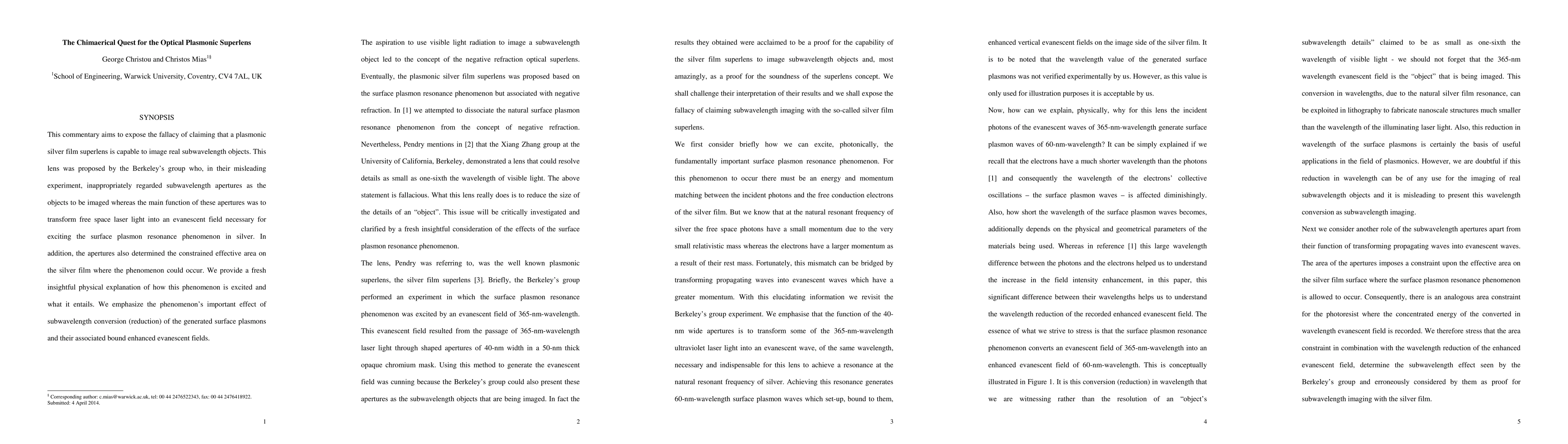 This commentary aims to expose the fallacy of claiming that a plasmonic silver film superlens is capable to image real subwavelength objects. This lens was proposed by the Berkeley's group who, in their misleading experiment, inappropriately regarded subwavelength apertures as the objects to be imaged whereas the main function of these apertures was to transform free space laser light into an evanescent field necessary for exciting the surface plasmon resonance phenomenon in silver. In addition, the apertures also determined the constrained effective area on the silver film where the phenomenon could occur. We provide a fresh insightful physical explanation of how this phenomenon is excited and what it entails. We emphasize the phenomenon's important effect of subwavelength conversion (reduction) of the generated surface plasmons and their associated bound enhanced evanescent fields.