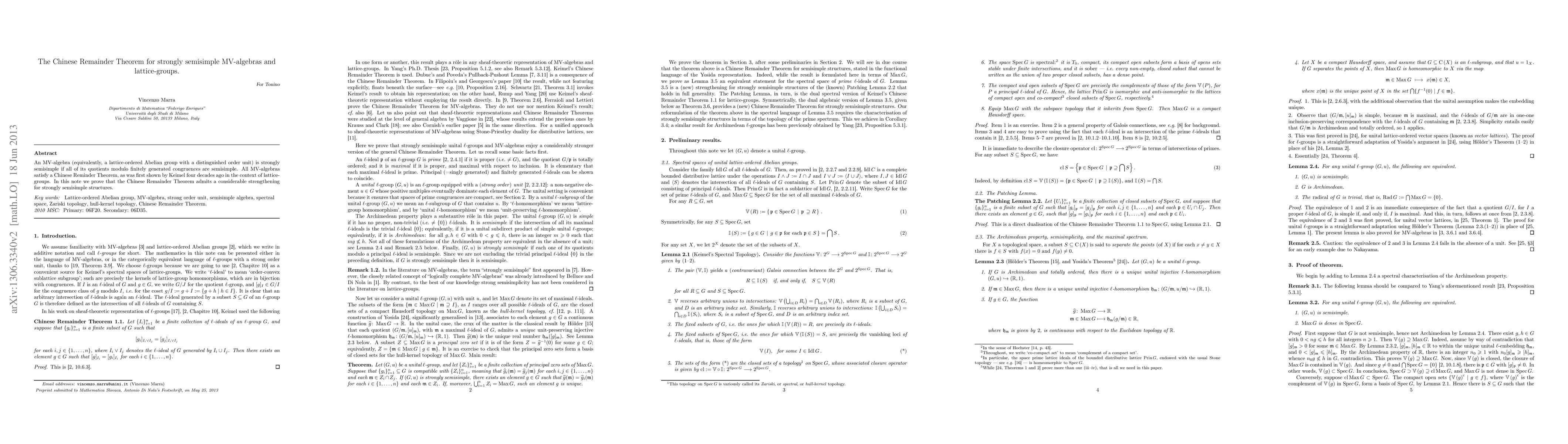This paper demonstrates that strongly semisimple MV-algebras, a class of lattice-ordered Abelian groups, satisfy a strengthened version of the Chinese Remainder Theorem, enhancing the classical result originally established for lattice-groups.
