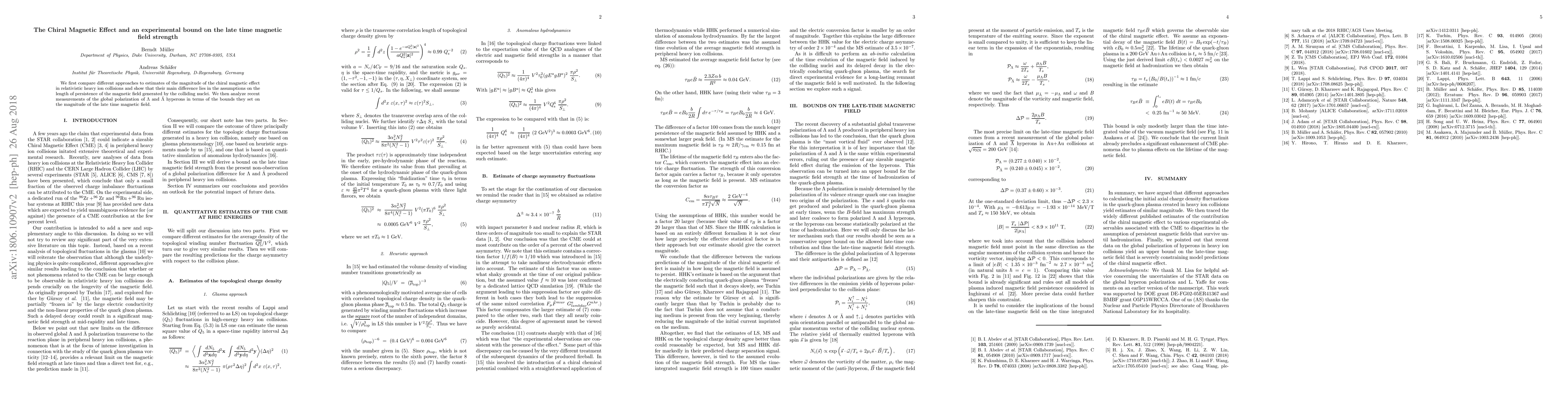 This paper compares various methods for estimating the chiral magnetic effect in relativistic heavy ion collisions, highlighting differences based on magnetic field duration assumptions. It also evaluates recent hyperon polarization measurements to derive experimental bounds on the late time magnetic field strength.
