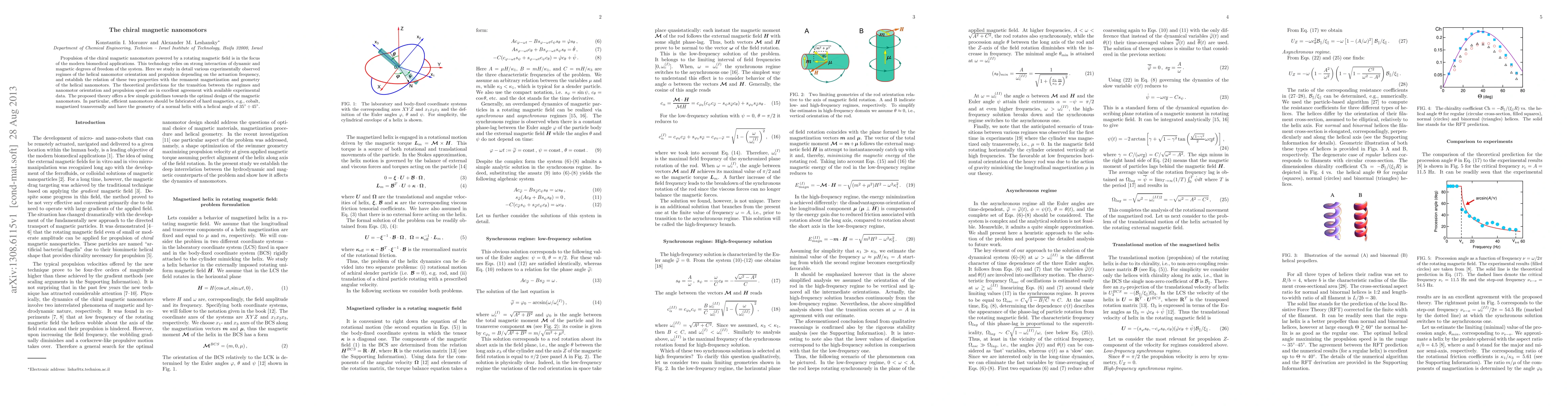 This paper investigates chiral magnetic nanomotors driven by rotating magnetic fields, focusing on their orientation and propulsion based on actuation frequency, remanent magnetization, and geometry. Theoretical predictions align well with experimental data, suggesting optimal design guidelines for efficient nanomotors, including the use of hard magnetic materials like cobalt and a helical geometry with a helical angle of 35-45 degrees.