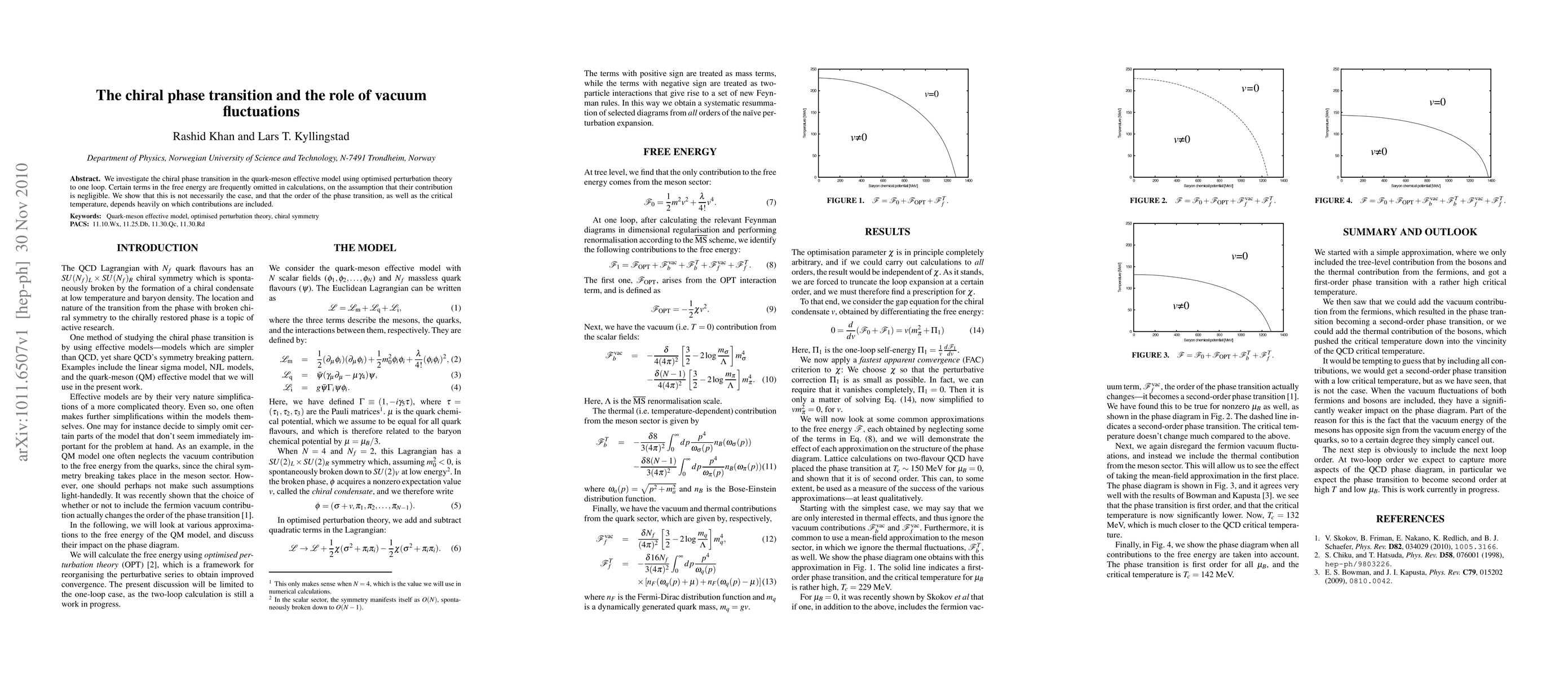 We investigate the chiral phase transition in the quark-meson effective model using optimised perturbation theory to one loop. Certain terms in the free energy are frequently omitted in calculations, on the assumption that their contribution is negligible. We show that this is not necessarily the case, and that the order of the phase transition, as well as the critical temperature, depends heavily on which contributions are included.