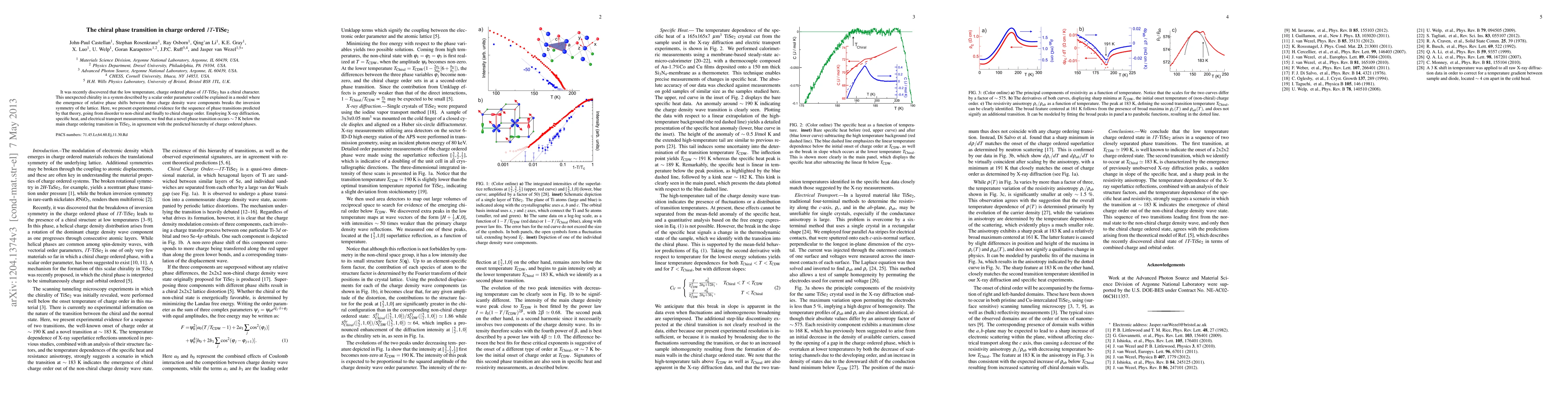 The study presents experimental evidence confirming a novel chiral phase transition in 1T-TiSe2 below the main charge ordering transition, revealing a sequence of phase transitions from disorder to non-chiral and finally to chiral charge order, supported by X-ray diffraction, specific heat, and electrical transport measurements. This transition aligns with theoretical predictions of symmetry-breaking inversion effects.