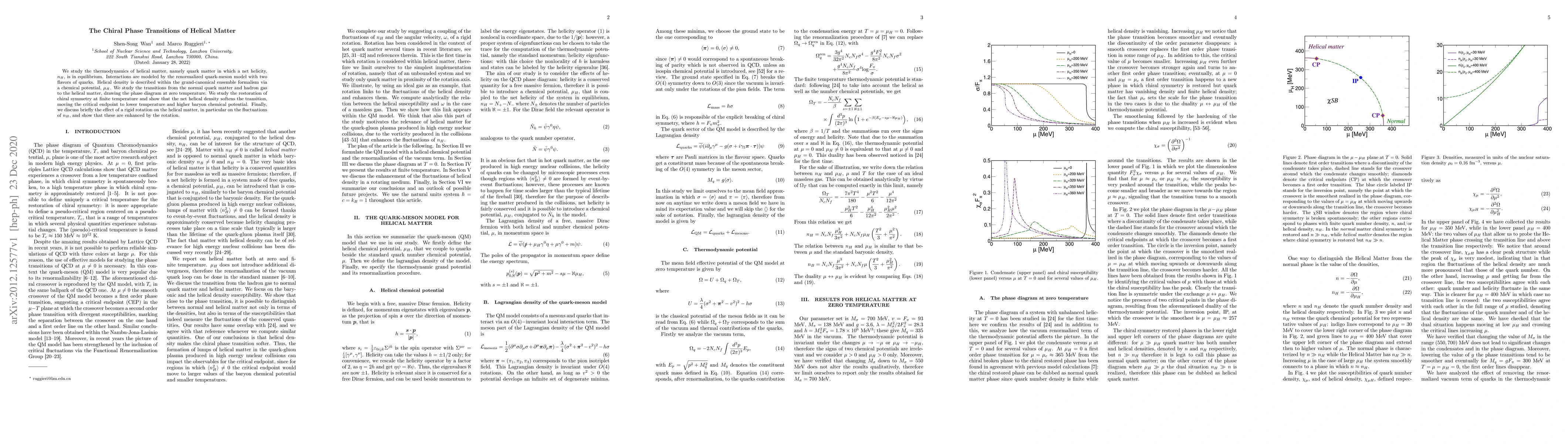 Researchers studied the thermodynamics of helical matter in quark matter, finding that a net helicity leads to softer phase transitions at higher temperatures. A rigid rotation enhances fluctuations in this state.