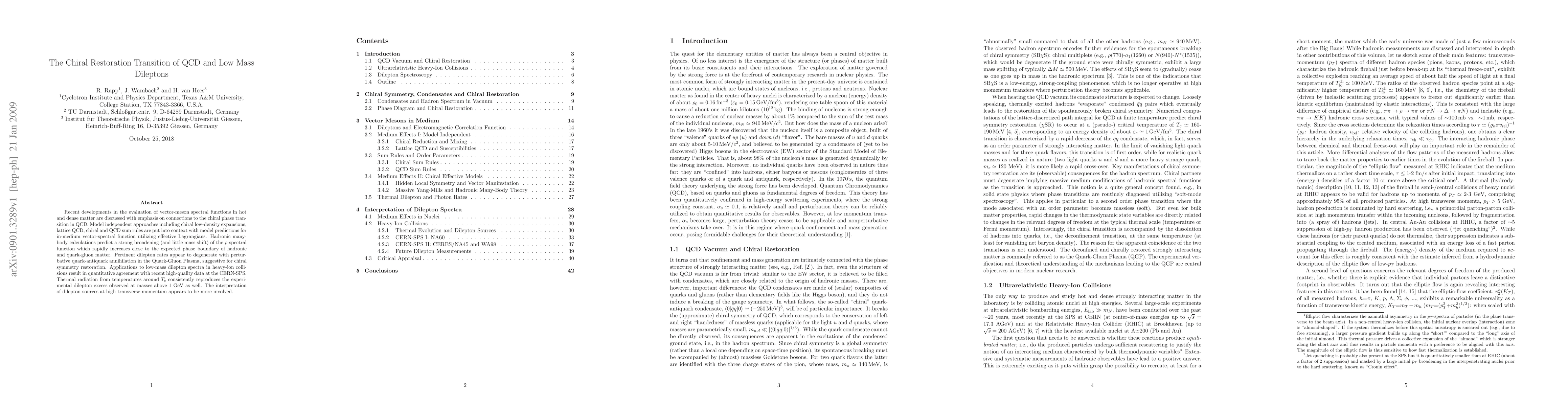 This paper investigates the chiral restoration transition in QCD through the analysis of low-mass dileptons, showing that strong broadening of the $\rho$ spectral function near the phase boundary indicates chiral symmetry restoration. The study aligns theoretical predictions with experimental data from CERN-SPS heavy-ion collisions.