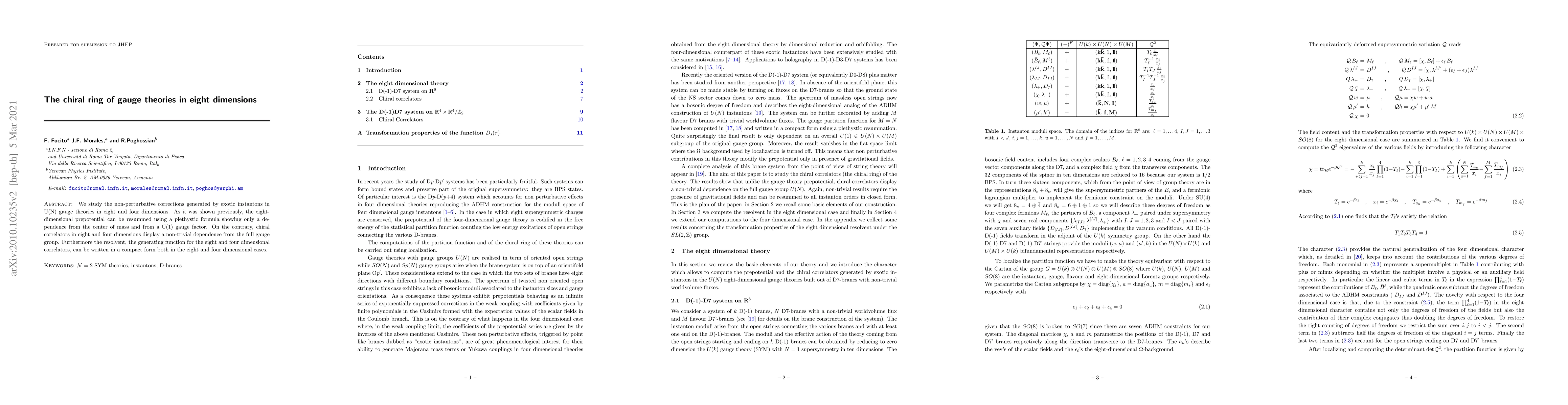 We study the non-perturbative corrections generated by exotic instantons in U(N) gauge theories in eight and four dimensions. As it was shown previously, the eight-dimensional prepotential can be resummed using a plethystic formula showing only a dependence from the center of mass and from a U(1) gauge factor. On the contrary, chiral correlators in eight and four dimensions display a non-trivial dependence from the full gauge group. Furthermore the resolvent, the generating function for the eight and four dimensional correlators, can be written in a compact form both in the eight and four dimensional cases.