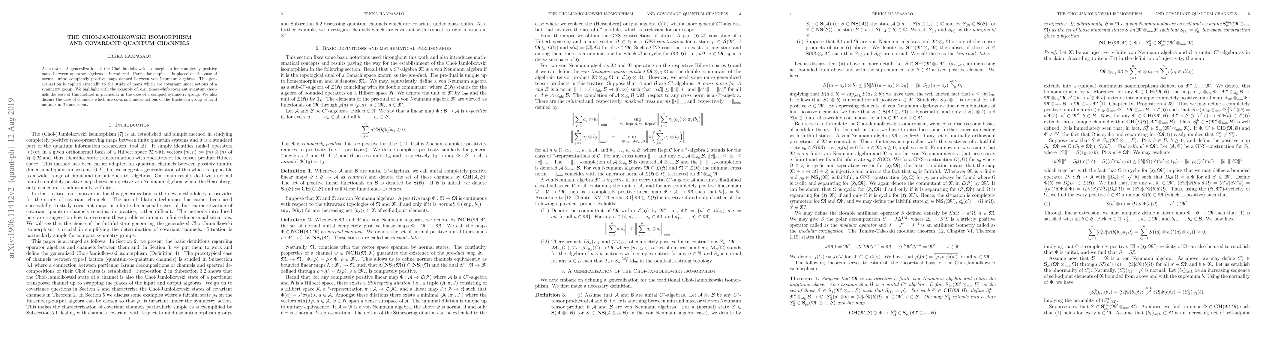 Researchers introduce a generalization of the Choi-Jamiolkowski isomorphism for studying covariant quantum channels under symmetry group actions, simplifying analysis of phase-shift-covariant channels and those with Euclidean group invariance.