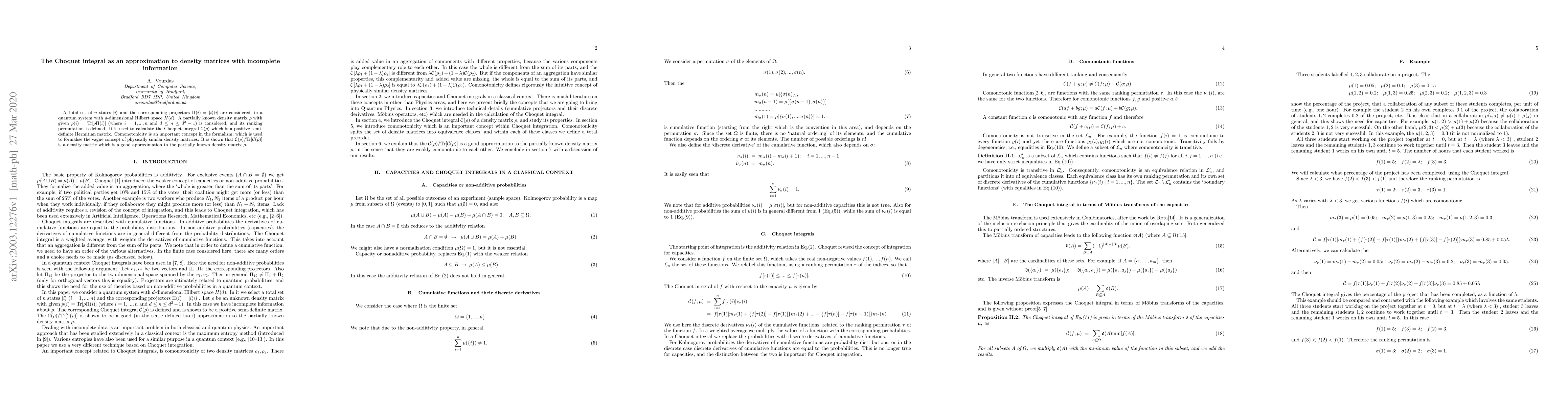A total set of $n$ states $|i\rangle$ and the corresponding projectors $\Pi(i)=|i\rangle \langle i|$ are considered, in a quantum system with $d$-dimensional Hilbert space $H(d)$. A partially known density matrix $\rho$ with given $p(i)={\rm Tr}[\rho \Pi(i)]$ (where $i=1,...,n$ and $d\le n\le d^2-1$) is considered, and its ranking permutation is defined. It is used to calculate the Choquet integral ${\cal C}(\rho)$ which is a positive semi-definite Hermitian matrix. Comonotonicity is an important concept in the formalism, which is used to formalise the vague concept of physically similar density matrices. It is shown that ${\cal C}(\rho)/{\rm Tr}[{\cal C}(\rho)]$ is a density matrix which is a good approximation to the partially known density matrix $\rho$.