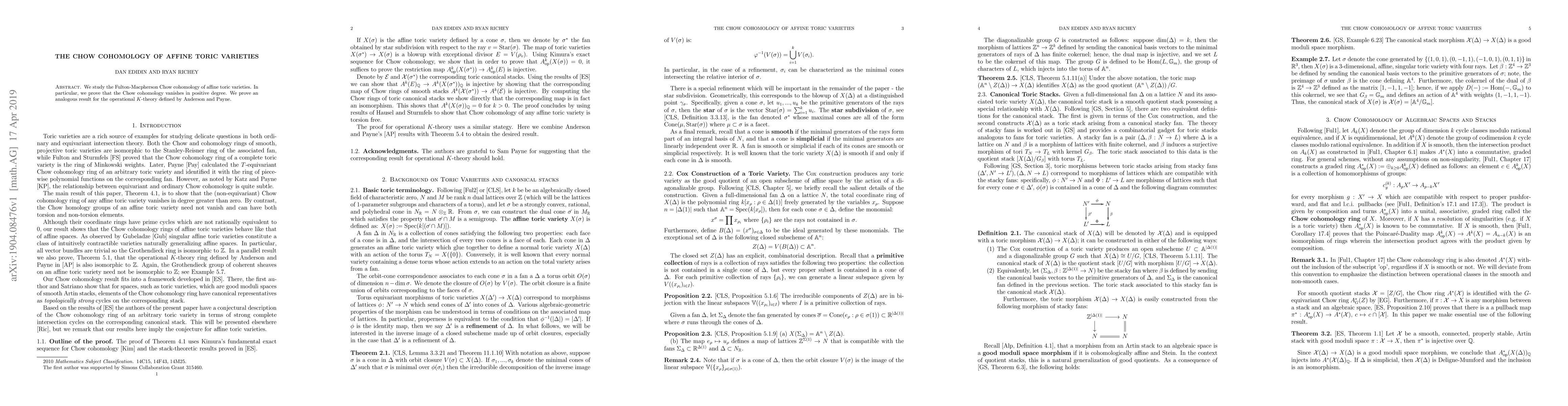 The work combines and extends previous results on Chow cohomology and K-theory of toric varieties, offering new insights into the structure of these algebraic invariants for affine toric varieties, and proving their torsion-freeness.